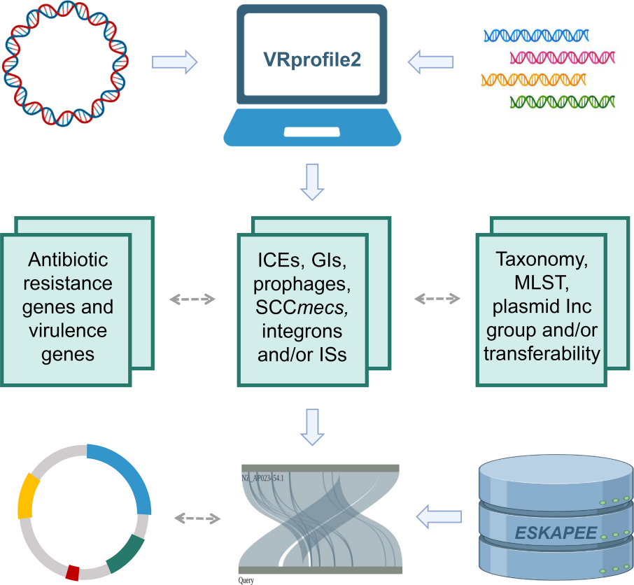 近日,上海交通大学生命科学技术学院、微生物代谢国家重点实验室欧竑宇研究组在分子生物学知名刊物Nucleic Acids Research上发表题为“VRprofile2: detection of antibiotic resistance-associated mobilome in bacterial pathogens”的研究论文。该论文报道了病原菌耐药移动元件一键式分析的新软件VRprofile2,将有助于对多重耐药区形成机制的研究,为遏制细菌耐药性的传播提供新的思路。生命科学技术学院博士生王萌为该论文第一作者,欧竑宇教授为通讯作者。