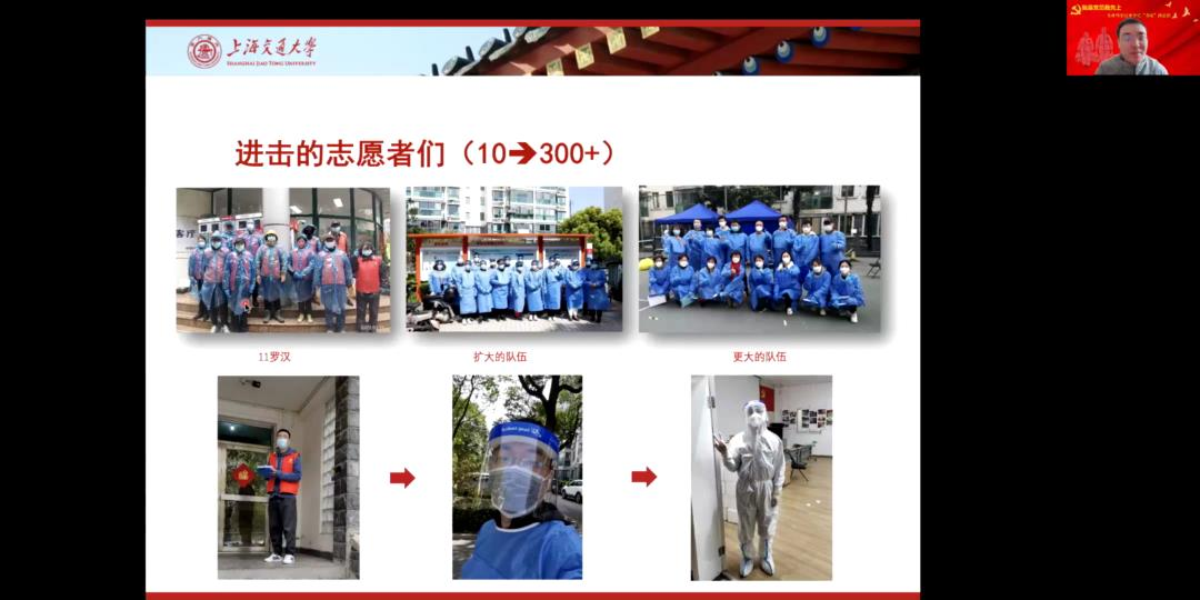 生科志愿者用行动诠释战疫决心,共筑交大、上海防疫长城,践行中国共产党人的初心使命,以奉献展示了交大人的责任担当。通过此次微党课,全体生科人深受感动与鼓舞,纷纷表示将进一步投身防疫志愿服务工作中,聚沙成塔,共同抗击疫情,让“我是党员我先上”成为最响亮的口号与最坚决的行动,为抗疫的最终胜利做出贡献。