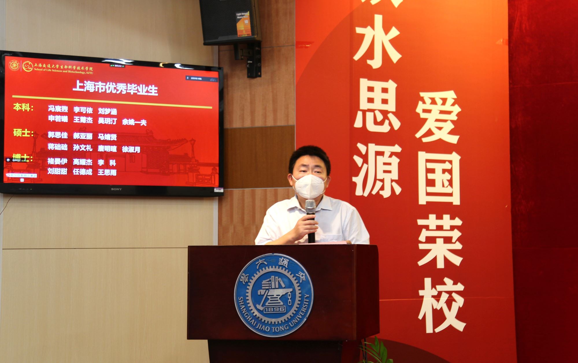 随后,导师代表为本、硕、博毕业生颁发学位证书。李文纯宣读优秀毕业生表彰名单,对上海市优秀毕业生获得者、上海交通大学优秀毕业生获得者、校优博论文提名奖获得者、校优异学士学位论文获得者、学院优秀学士学位论文获得者表示衷心的祝贺,向赴中西部地区、基层单位就业的生科学子表示衷心的感谢。