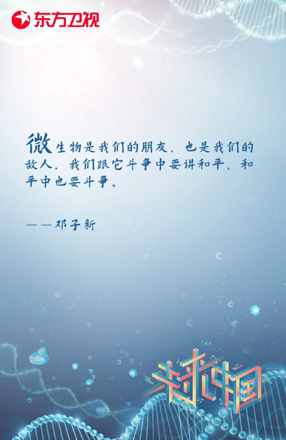 #未来中国#第九期邀请到微生物学家、中国科学院院士邓子新,同大家一起讨论那些鲜为人知的“微生物日常”、展望合成生物学的发展前景和未来目标。一起来回顾科学榜样邓子新的高能发言。