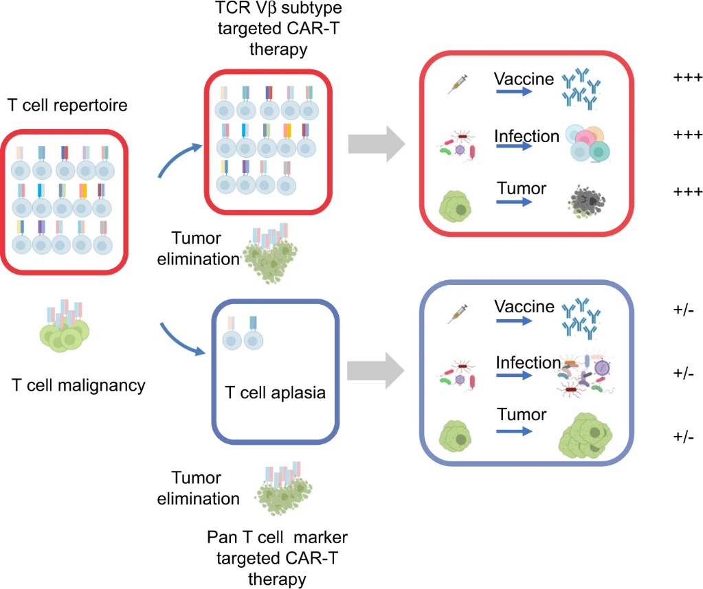 图1. 靶向TCR Vβ治疗T细胞肿瘤模式图