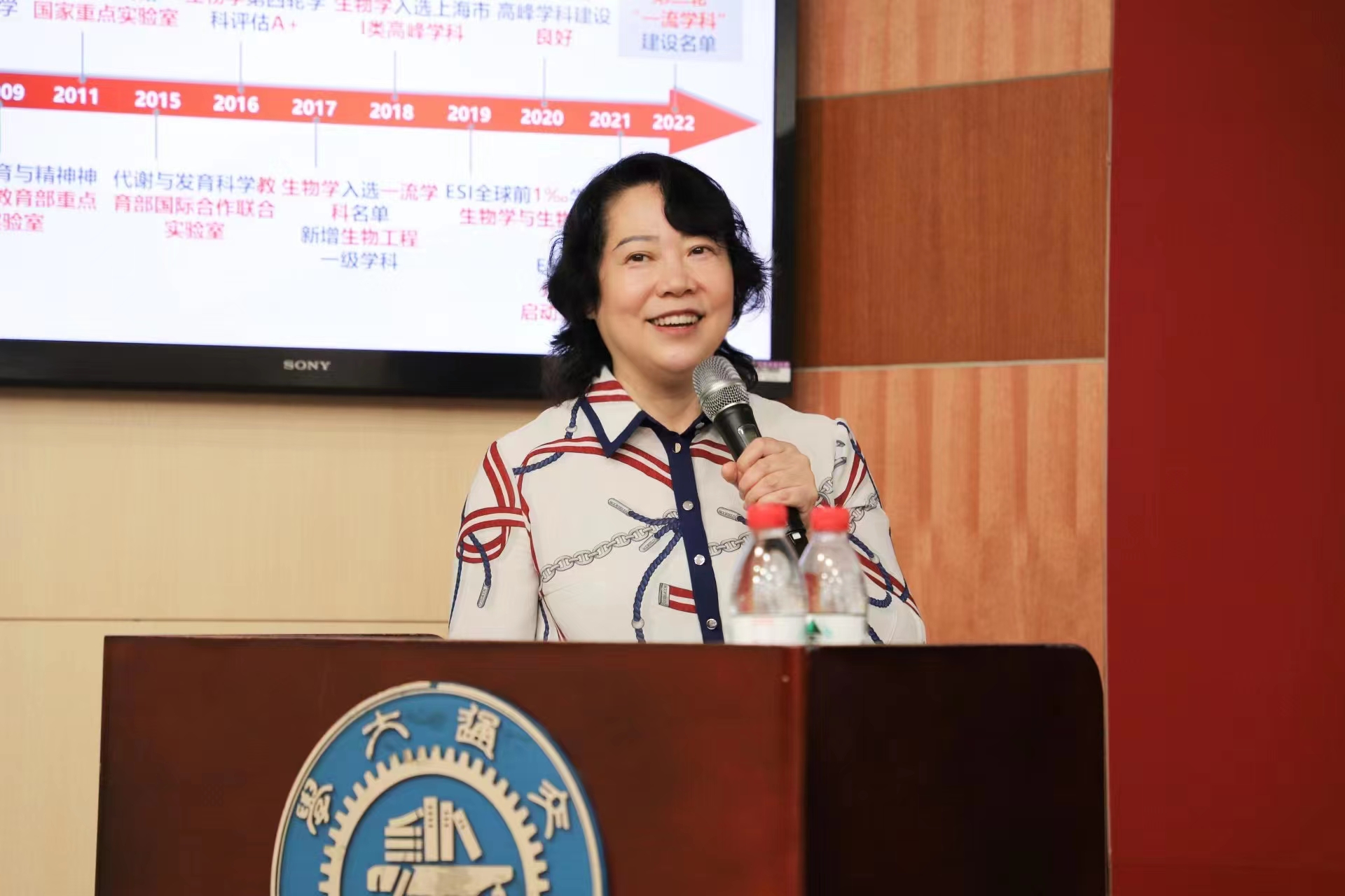 冯雁介绍了生命学科发展态势,介绍了什么是生命科学。她从《Science》125个最具挑战性的科学问题、2021全世界十大科技进展、健康中国和十四五生物产业规划等方面展示了生命科学的重要性,引发同学们对于生命科学广阔世界的热爱与向往。