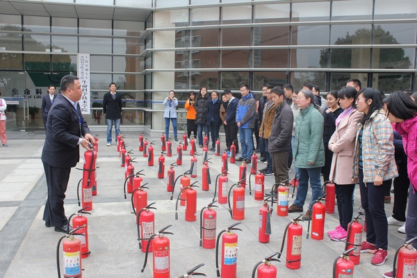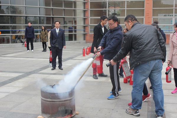 随后,全体参训人员演练了火场撤离,并集合于生命科学技术学院广场,逐一使用二氧化碳灭火器和干粉灭火器对着火点进行了灭火操作。物业安保人员还演示了消防栓灭火的基本要领和操作过程。