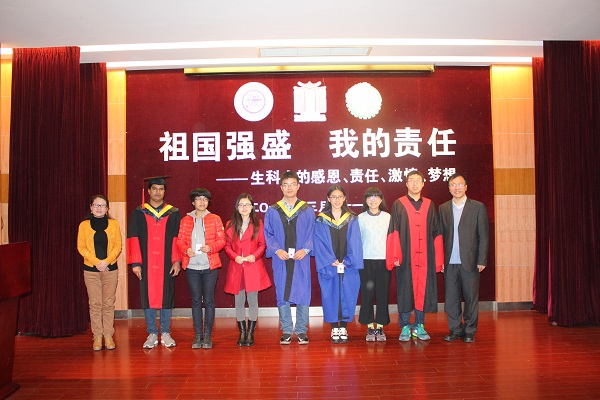 3月21日,生命科学技术学院在树华多功能厅举办了以“祖国强盛,我的责任——生科人的感恩、责任、激情、梦想”为主题的2016届研究生毕业远航大会。1996届校友、上海仁科生物科技有限公司总经理邱雁南,院长邓子新,党委书记仰颐,应邀担任访谈嘉宾。博士生王艳菁担任访谈主持人。