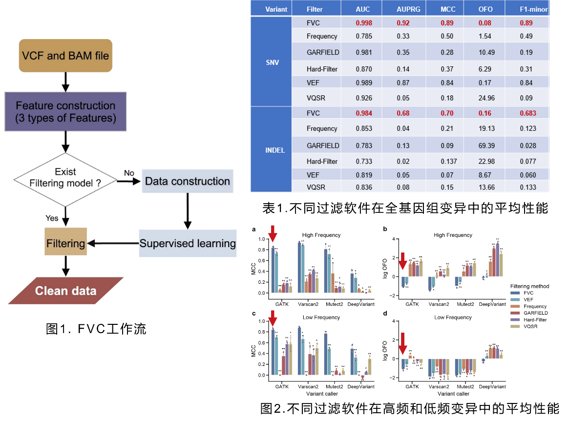 为解决上述问题,吕晖团队构建了自适应过滤方法FVC (Filtering for Variant Calls),用于对不同遗传变异分析软件(例如GATK HaplotypeCaller、Mutect、Varscan和DeepVariant)检出结果中的假阳性变异进行过滤。