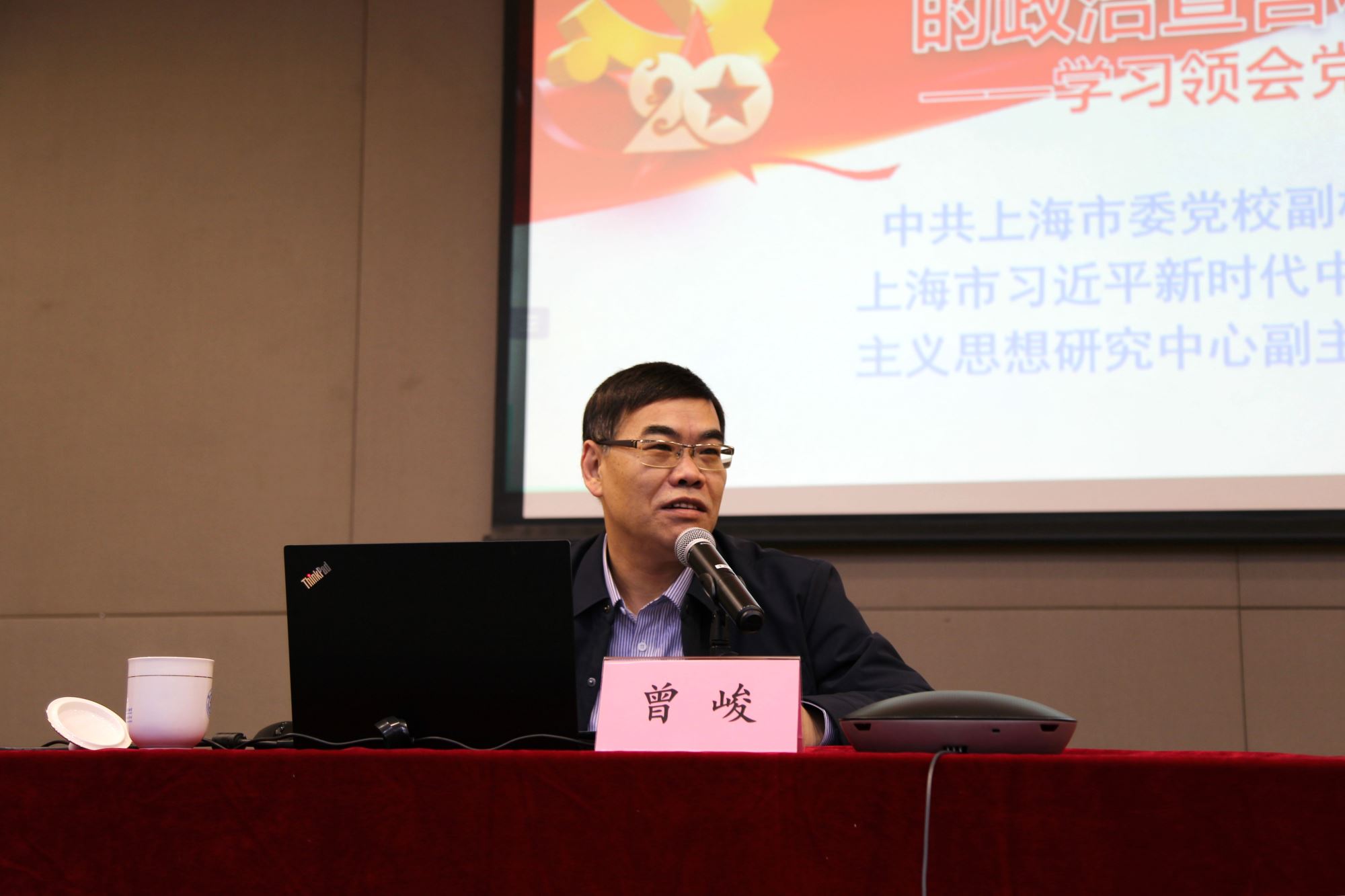 曾峻教授以“夺取中国特色社会主义新胜利的政治宣言和行动纲领——学习领会党的二十大精神”为题,从党的二十大的意义、主题、报告结构入手,重点从新时代伟大变革的里程碑意义、最新理论的创新发展与核心要义、中国式现代化的科学内涵、以党的自我革命引领社会革命、团结奋斗创造新的历史伟业五个方面对二十大报告内容进行了深入阐释,对全体党员干部、师生员工深刻领会和全面把握党的二十大精神,具有重要的指导意义和促进作用。