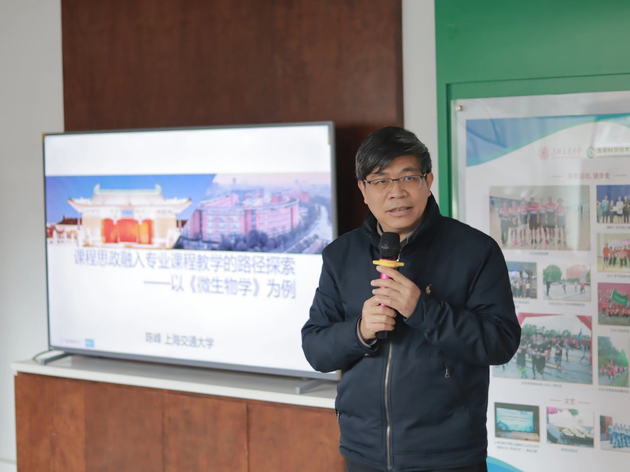 2023年3月23日,由生命科学技术学院教学发展分中心主办的第13期教学沙龙在教工之家举行。活动邀请了2022年上海市课程思政示范课获得者陈峰教授分享课程思政的建设心得,学院三十多位教师参加了本次活动。