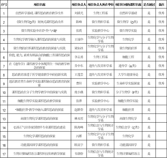 生命科学技术学院2020年教育教学改革项目-“课程思政”专项结题评审结果公示