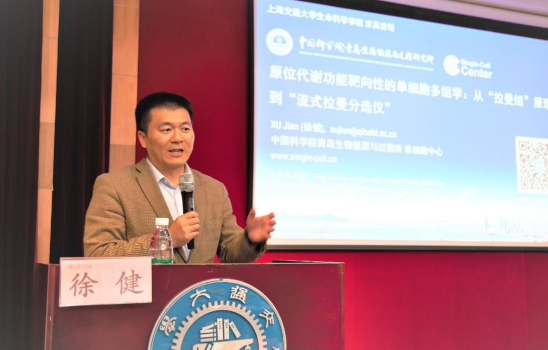 4月6日上午,中科院青岛生物能源与过程所研究员徐健应邀做客第26期求真讲坛,做题为《原位代谢功能靶向性的单细胞多组学:从“拉曼组”原理到“流式拉曼分选仪”》的报告。来自上海交通大学生命学科相关院系的教师、博士后、研究生共计50余人参会。讲坛由生命科学技术学院副院长林双君主持。