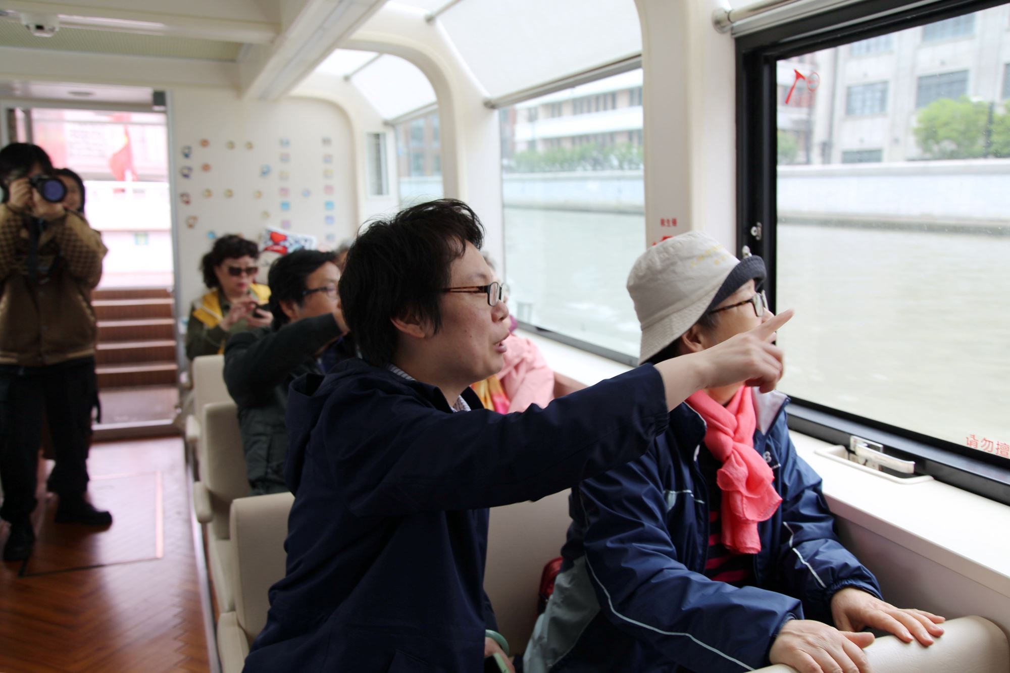 苏州河沿岸是上海最初形成发展的中心,催生了几乎大半个古代上海,后又用100年时间成为搭建国际大都市上海的水域框架。纵观苏州河两岸,自华漕以下直至河口,老工业建筑与相关的商业物流服务建筑鳞次栉比,如今已成为上海近代民族工业发展史的最好见证。它们的功能布置、建筑形态、工程材料、细部装饰中,蕴藏着丰富的经济、科技、社会等多方面的信息密码与价值,向今人、后人展示上海城市历史文化。从四行仓库码头出发,游船缓缓驶向外滩源,老同志们跟随游船上的导游讲解,在水上感受上海近代以来的城市发展与苏州河的历史变迁。每当游经过熟悉的建筑和地界,老同志们都情绪激昂,滔滔不绝地讲述过去的故事,感慨发展之飞速,变化之巨大,感恩中国共产党的正确领导,充分感受新时代上海在改革开放和社会主义现代化建设进程中取得的发展成就,坚定对未来发展的矢志信念。一路上,大家欣赏着苏州河沿岸风光,倾听着每一座历史建筑的声音,拍照打卡,互动交流,气氛十分热烈。