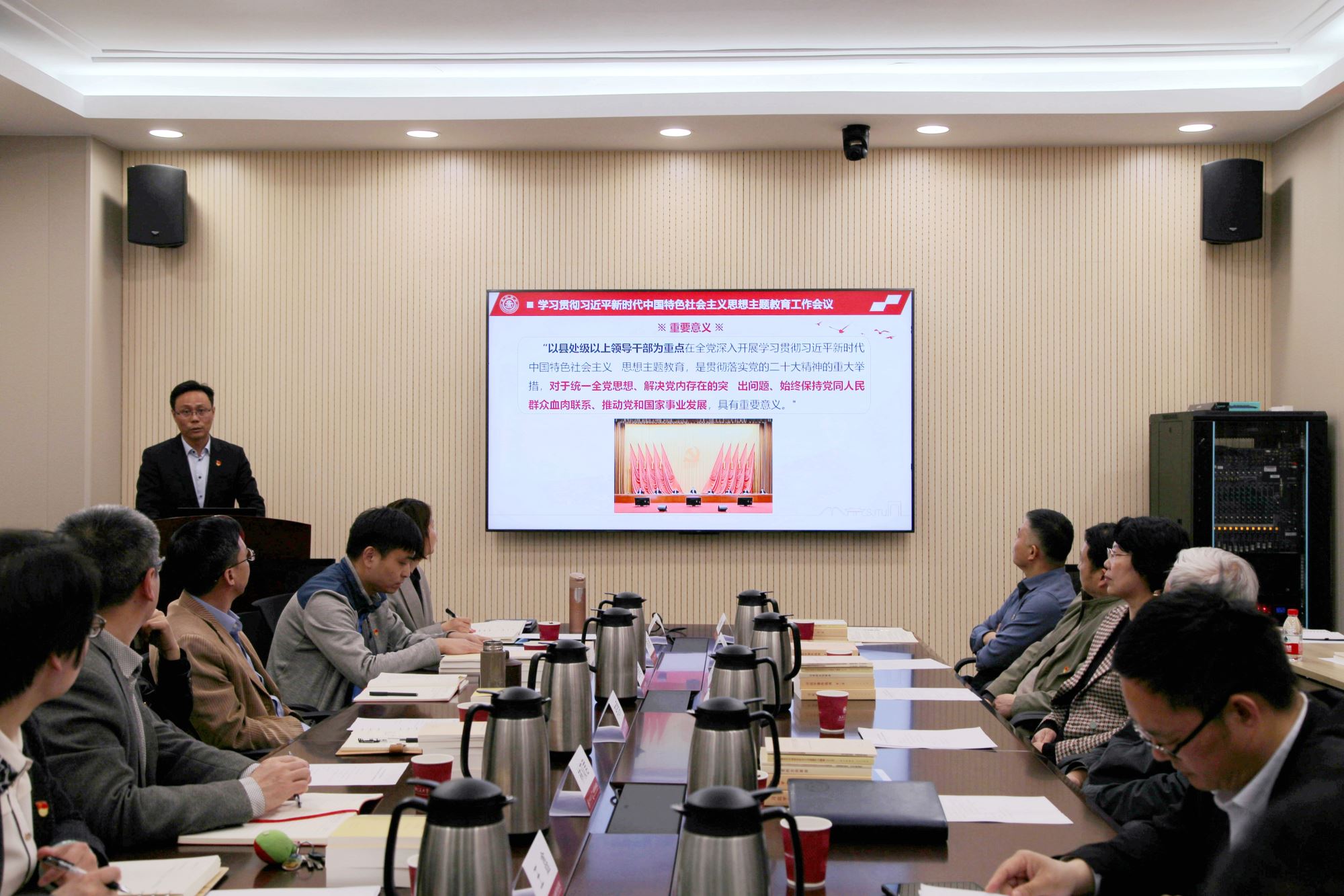 学校第十一巡回指导组组长、校务委员会专职副主任吴旦做指导讲话。学校第十一巡回指导组副组长曹杰、联络员满艺,学院党委委员、班子成员,师生党支部书记、支委代表等参加会议。学院党委书记、学院主题教育领导小组组长顾建平主持会议并作动员部署。