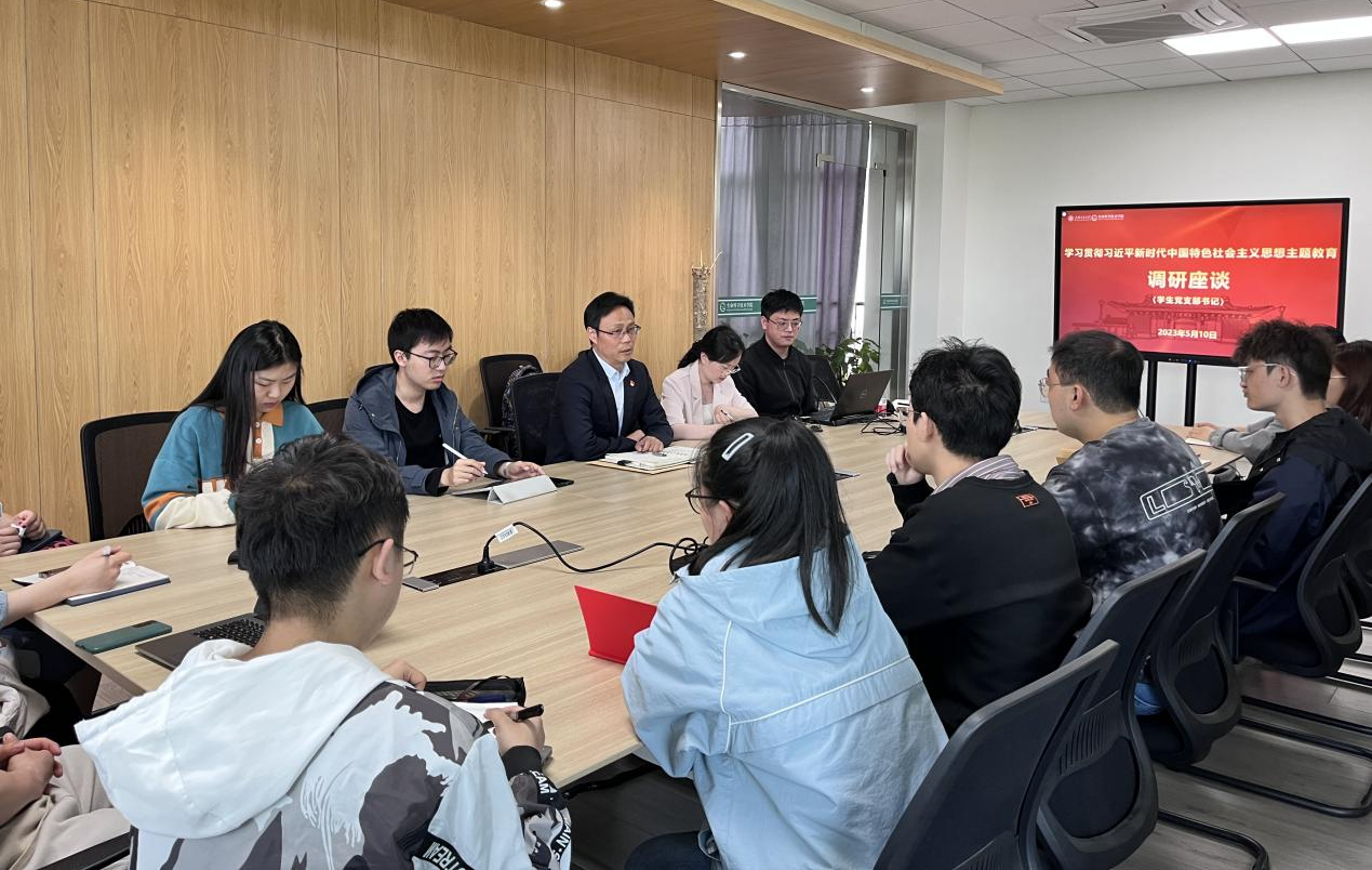顾建平做调研座谈,希望各学生党支部在主题教育活动中通过走访调研等形式,认真听取同学们的意见和建议,及时向学院反馈集中的瓶颈问题。各学生党支书结合同学们自身发展中的困惑与需求以及学院建设管理等方面存在的问题进行了交流反馈。