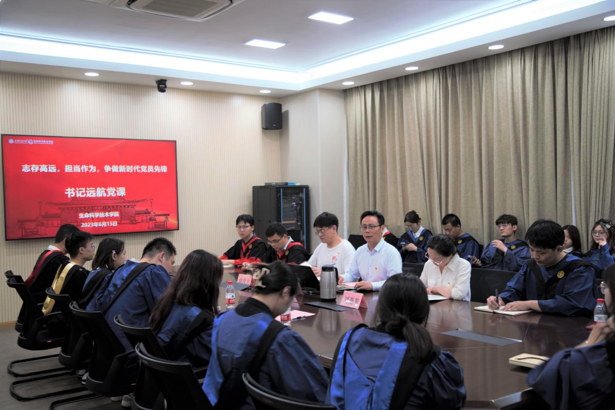 6月15日下午,生命科学技术学院举行“师生同行话未来,砥砺奋进建新功”2023年毕业生党员主题教育活动。学院党委书记顾建平,学生办公室主任刘燕芳,学生党建工作辅导员陈伟志、王元萌以及2023届毕业生党员代表出席会议。会议由陈伟志主持。