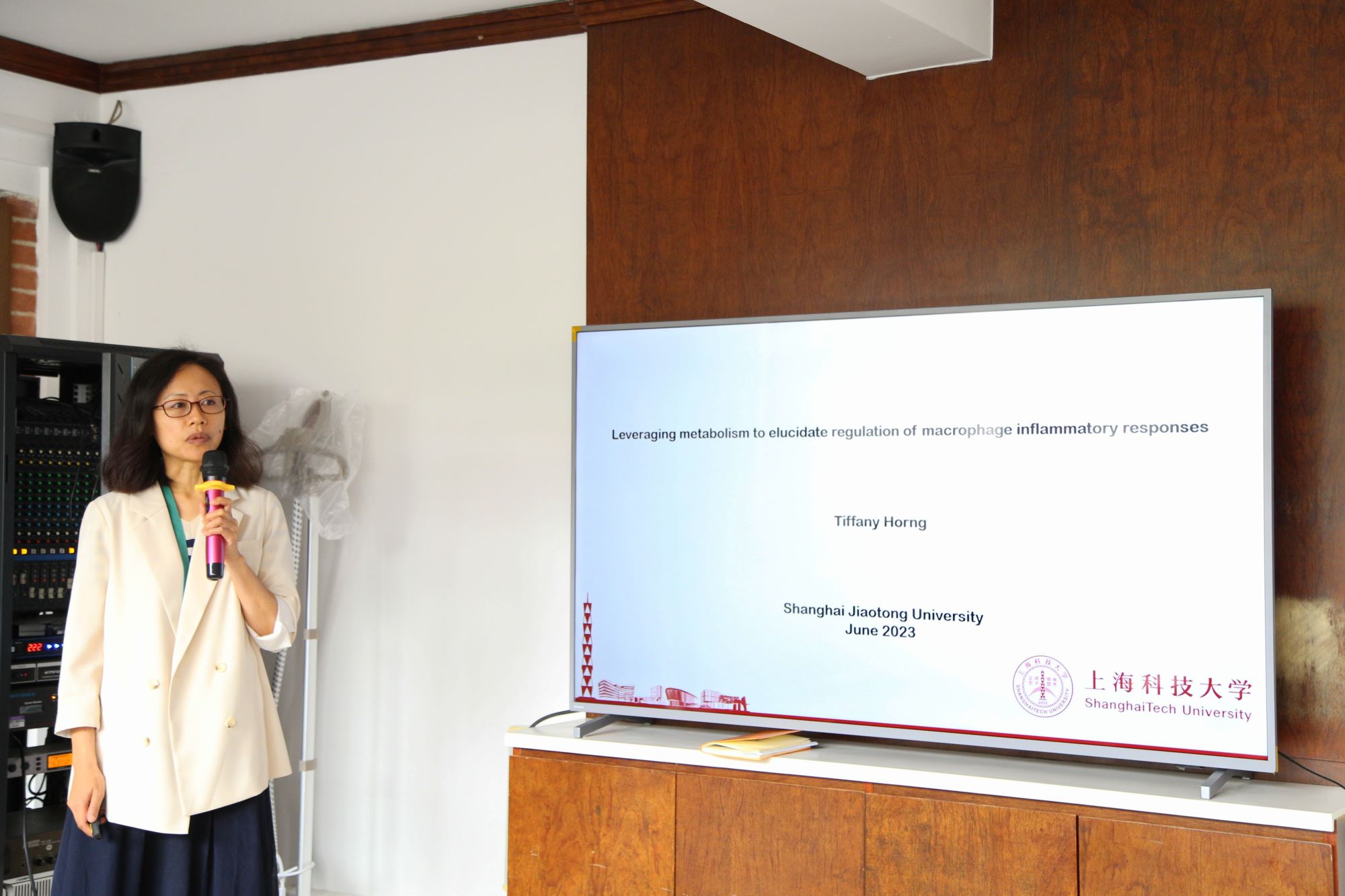 6月26日,由上海交通大学生命科学技术学院青年教师联谊会主办的第一期学术沙龙在教工之家举办。上海科技大学Tiffany Horng(洪诗雅)教授和香港科技大学赖勇教授受邀担任本次学术沙龙的主讲人。来自学院各系所的青年教师、博士后等30余人参加了本次学术交流。活动由学院青年教师联谊会会长胡泽汗、长聘教轨副教授曹博分别主持。