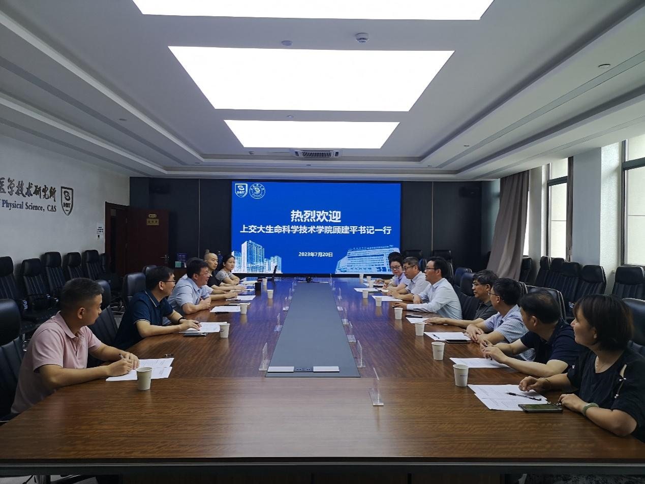 为深入学习贯彻习近平新时代中国特色社会主义思想主题教育,扎实推进调查研究工作,推动党建与事业发展深度融合,7月19日-20日,上海交通大学生命科学技术学院院长冯雁、党委书记顾建平带队,学院副院长李志勇、林双君、张晓君、党委副书记王鑫、张燕红、实验教学中心主任张雪洪、院长助理蒋群、组织员段慧丹等一行赴合肥高校、科研院所开展调研活动,先后走访中国科学技术大学生命科学与医学部、中国科学院合肥物质科学研究院健康与医学技术研究所,重点围绕人才队伍建设、人才培养、有组织的科研、公共仪器平台建设等方面进行学习交流。