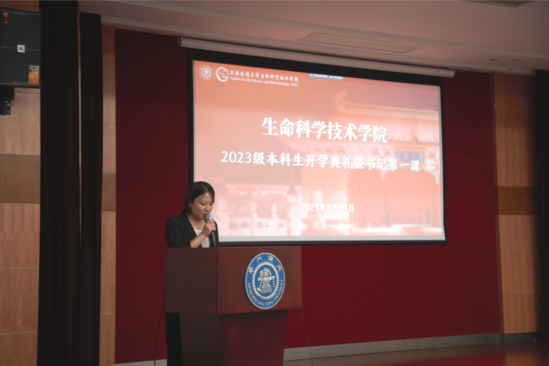 8月24日,上海交通大学生命科学技术学院2023级本科生开学典礼暨书记第一课在生命药学楼树华多功能厅隆重举行。上海交通大学生命科学技术学院院长冯雁,党委书记顾建平,副书记张燕红,校友代表仇子龙,教师代表张雷、齐颖新、曹博,班主任代表胡泽汗、孟祥周、黄哲,教务办公室主任谭晶,学生办公室主任刘燕芳出席典礼,学院思政教师,辅导员代表,以及2023级全体本科新生、生物科学(致远荣誉计划)新生及家长代表参加典礼。开学典礼由张燕红主持。