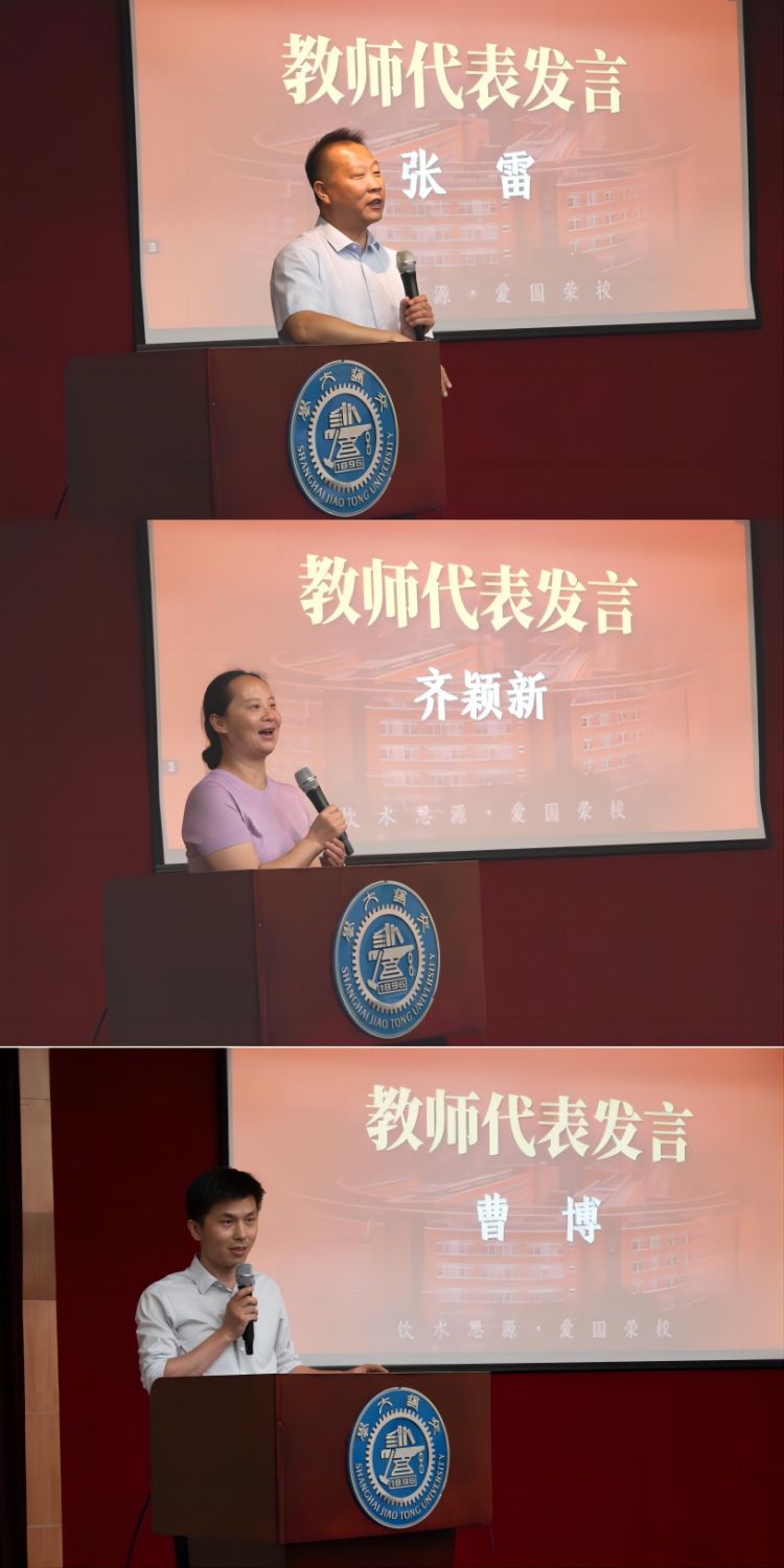家长代表、生科2301班施云洋同学母亲刘维珍女士发言。她对于同学们能够进入交大深表骄傲,并相信大家已经做好准备,也相信学校能够将同学们培育成为心怀国家、能堪大任的青年。她从家长的角度向同学们提出几点希望:希望同学们懂得感恩,希望同学们学会面对,希望同学们勇敢担当。最后,刘维珍代表所有家长,叮嘱同学们快乐学习,健康生活,常报平安。