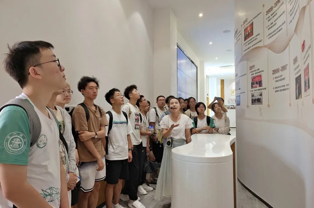 新生在学生办晏筠老师和班主任带领下参观生命科学技术学院“栩栩如生”学术文化展厅。学院自创建以来,经历了从无到有、由弱攀强的发展历程,走出了一条具有交大特色的跨越式发展之路。新生在沉浸式参观和体验中,了解学院发展历程、人才培养、教学及科研创新成果,对学院历史、学术前沿和学术精神有了更深入的了解。