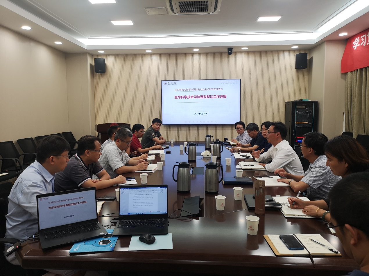 8月29日下午,生命科学技术学院召开主题教育整改整治工作专题会,学院领导班子成员、系(中心、平台、研究院)负责人、教工党支部书记、机关科室主任等代表参加会议,会议由党委书记顾建平主持。