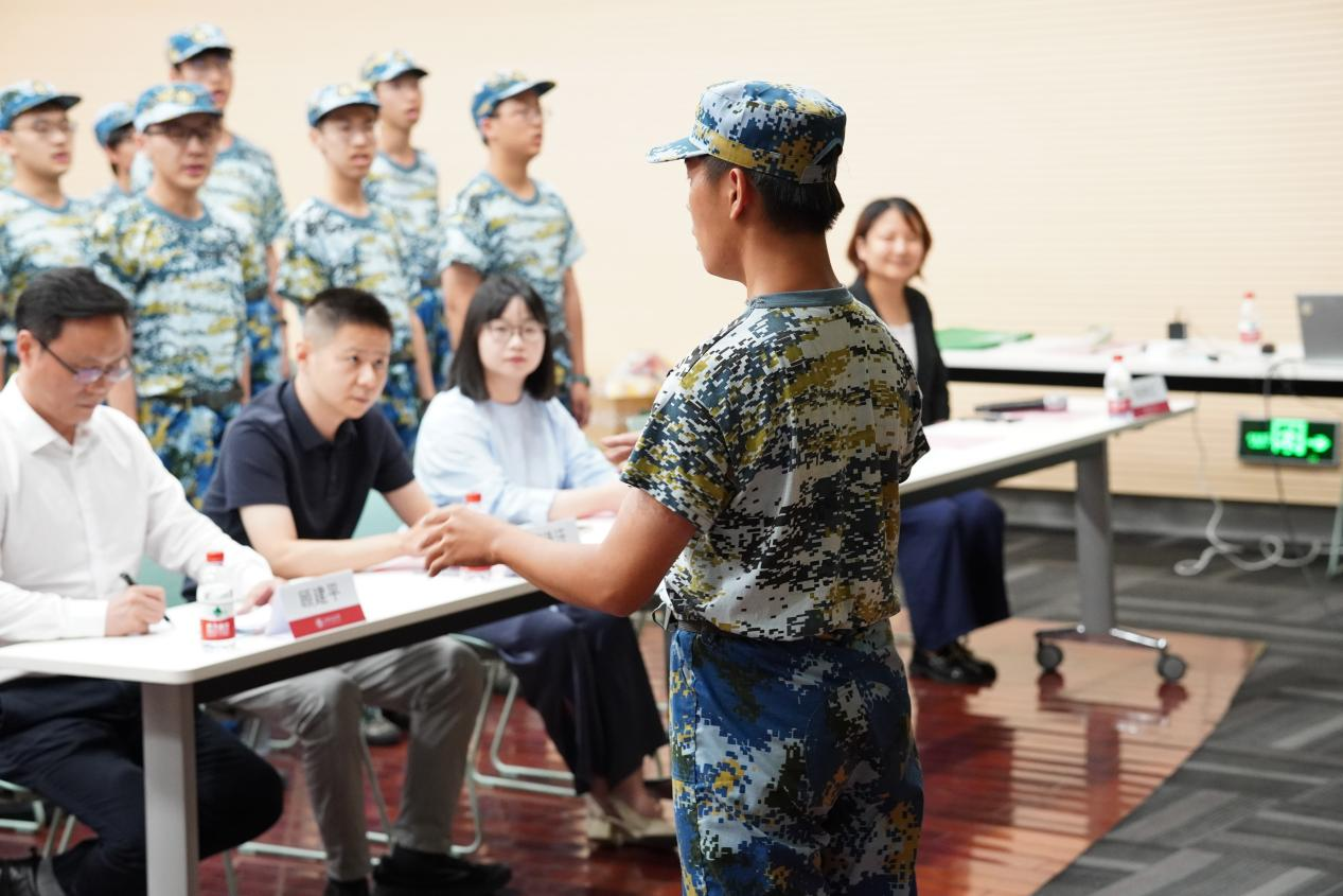 顾建平和冯雁代表学院致辞。顾建平肯定了同学们在军训期间付出的努力和收获的成绩,并结合自己的军训故事对同学们提出了期望,希望同学们在铸造钢铁一般的思想意志的同时涵养赤诚担当的爱国情怀,用自己的实际行动践行“强国有我”的青春誓言。