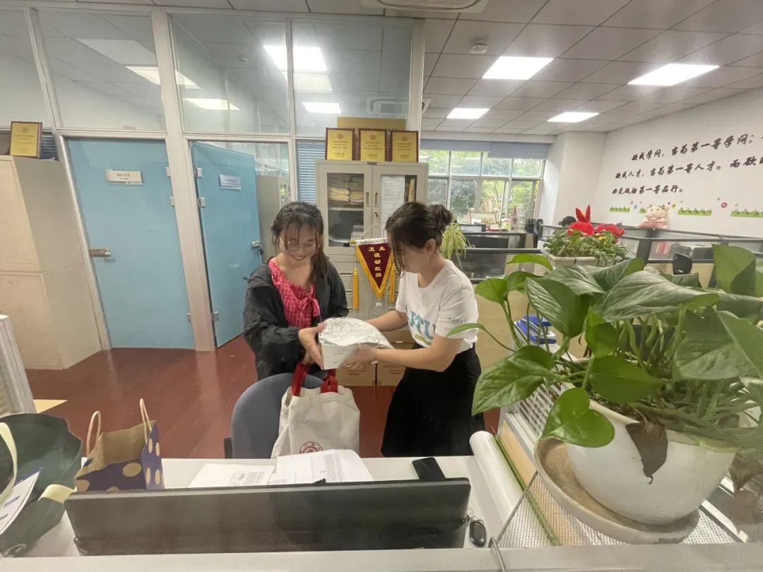 研究生会为新生准备好入学大礼包,一件件院衫、一张张校园卡、一枚枚校徽准确发地放到新生手中,让新生感受到了满满的人文关怀。从第一缕霞光到最后一抹夕阳,研究生志愿者们的持续坚守和热情服务,赢得了广大新生的称赞。