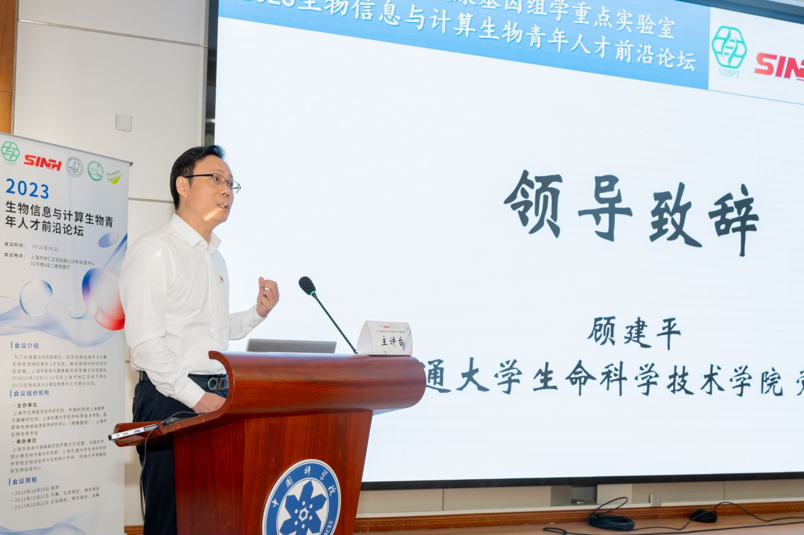 首先,生命科学技术学院党委书记顾建平致辞。他表示本次论坛是党建搭台的一次学术盛宴,充分体现了党建与业务工作的深度融合。支部共建为党建内涵提升、学科发展、青年人才成长提供了良好平台,希望在交流切磋中谋求党建与事业发展互融互促双提升。