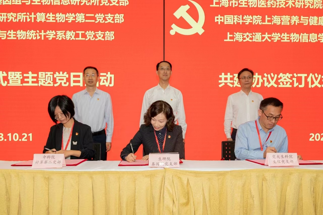 10月21日,生命科学技术学院生信系教工党支部联合上海市生物医药技术研究院基因所党支部、中国科学院上海营养与健康研究所计算第二党支部举行党建共建结对和学术交流活动,共同举办“2023生物信息与计算生物青年人才前沿论坛”。上海市生物医药技术研究院院长傅大煦、党委书记刘海峰、党委副书记王震,中国科学院上海营养与健康研究所纪委书记曹永、副所长汪思佳、上海交通大学生命科学技术学院党委书记顾建平出席本次活动,三家单位党支部党员、相关教师共计260人参加活动。