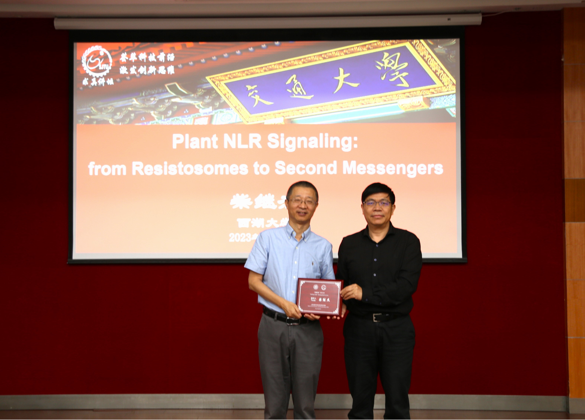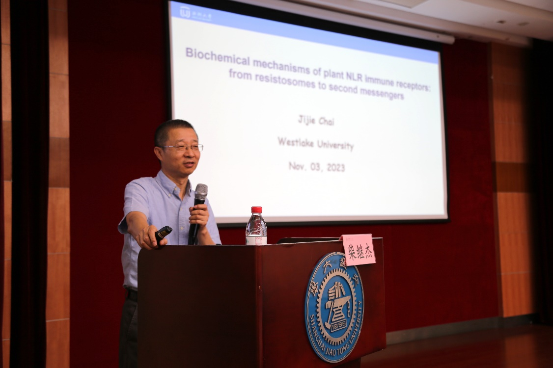 11月3日上午,西湖大学讲席教授柴继杰应邀做客第33期求真讲坛,做题为《Biochemical Mechanisms of Plant NLR Immune Receptors: from Resistosomes to Second Messengers》的主题报告。来自上海交通大学生命学科相关院系的教师、博士后、研究生80余人参会。讲坛由生命科学技术学院胡泽汗老师主持。