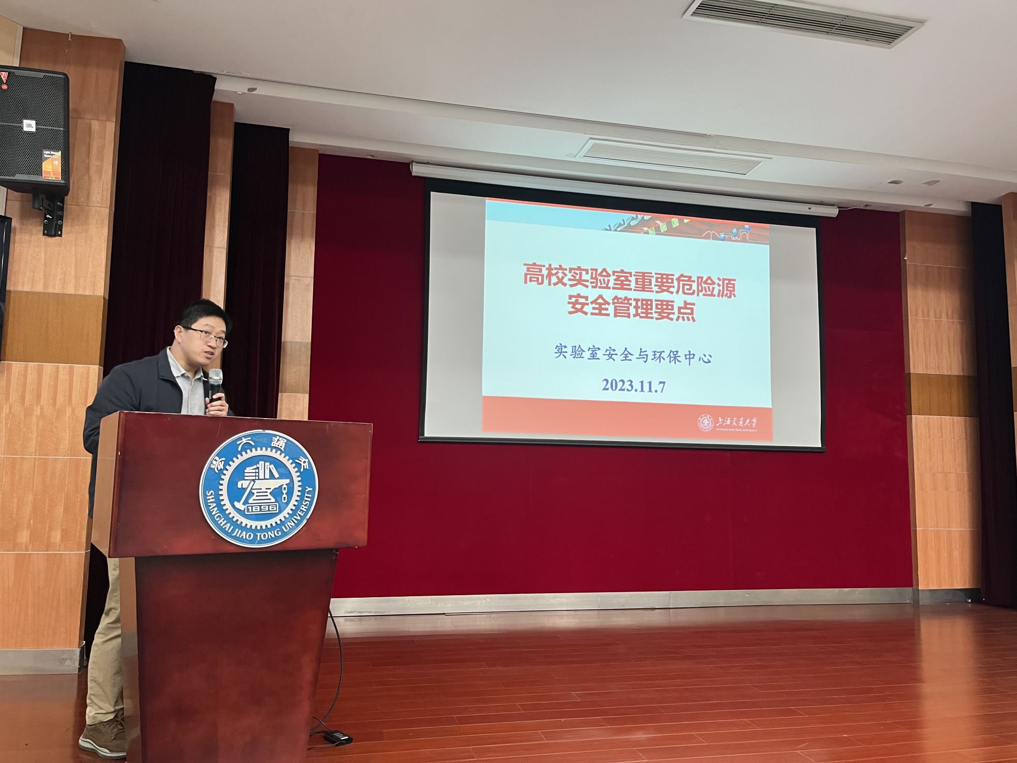 刘闯作“高校实验室重要危险源安全管理要点”专题培训。从事故的产生、如何防范事故、实验室安全的特点展开介绍,并重点讲解了危险化学品管理,实验工艺安全风险分析及实验室特种设备管理,实验室加热和制冷设备管理,实验室个人防护几方面。他提醒师生提高安全意识,掌握危险源管理要点,在实验中注重个人防护。