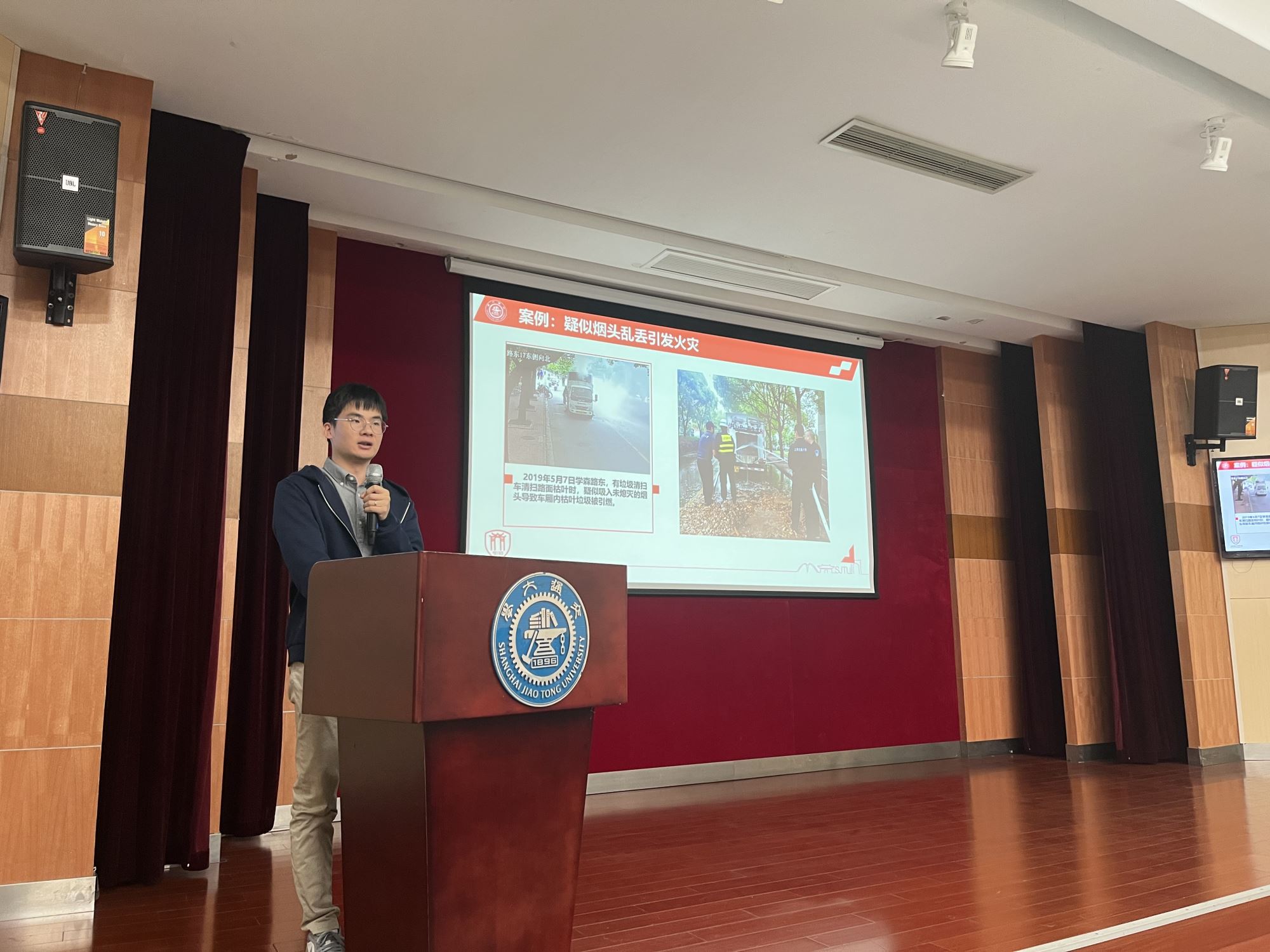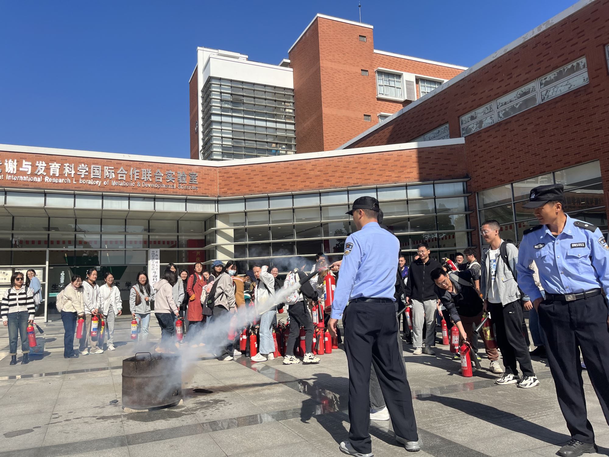 谢鹏辉介绍了火灾的案例警示及灭火的基本常识。2023级新生在学院广场前进行了应急救援和消防演练。