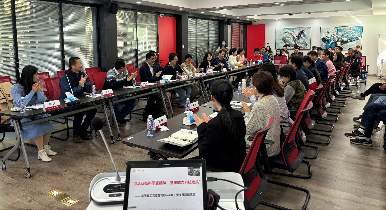 为深入学习贯彻习近平新时代中国特色社会主义思想,强化政治引领,坚定理想信念,感悟科学家精神,厚植爱国情怀,着力提升自主创新能力,以更高质量、更大贡献服务国家战略需求。近日,Bio-X研究院教工党支部与遗传发育系教工党支部联合开展“继承弘扬科学家精神,党建助力科技攻关”主题党日活动。学院党委书记、Bio-X研究院党支部书记顾建平,党委副书记王鑫,Bio-X研究院院长师咏勇以及双方支部党员同志参会。活动由Bio-X教工党支部副书记李兴旺与遗传发育系教工党支部书记杨选明主持。