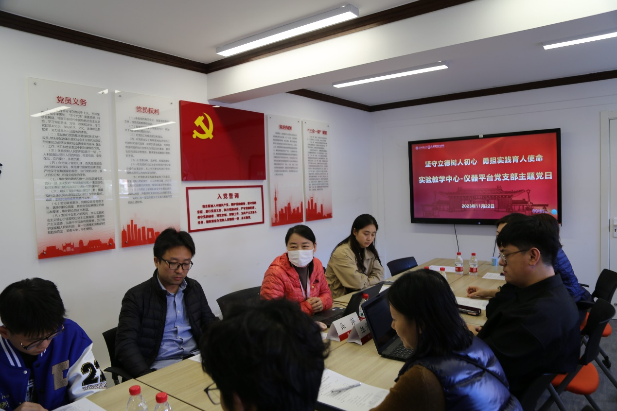 2023年11月22日,实验教学中心-仪器平台党支部在生物药学楼2号楼218党员之家开展主题为“坚守立德树人初心,勇担实践育人使命”的主题党日活动。学校优秀主题党日案例观摩员张青、宋妍,生命科学技术学院微生物科学系研究员蹇华哗,学院学生办、教务办代表,本科生代表,实验教学中心-仪器平台党支部全体党员约三十人余人参加。活动由实验教学中心-仪器平台党支部书记张萍主持。