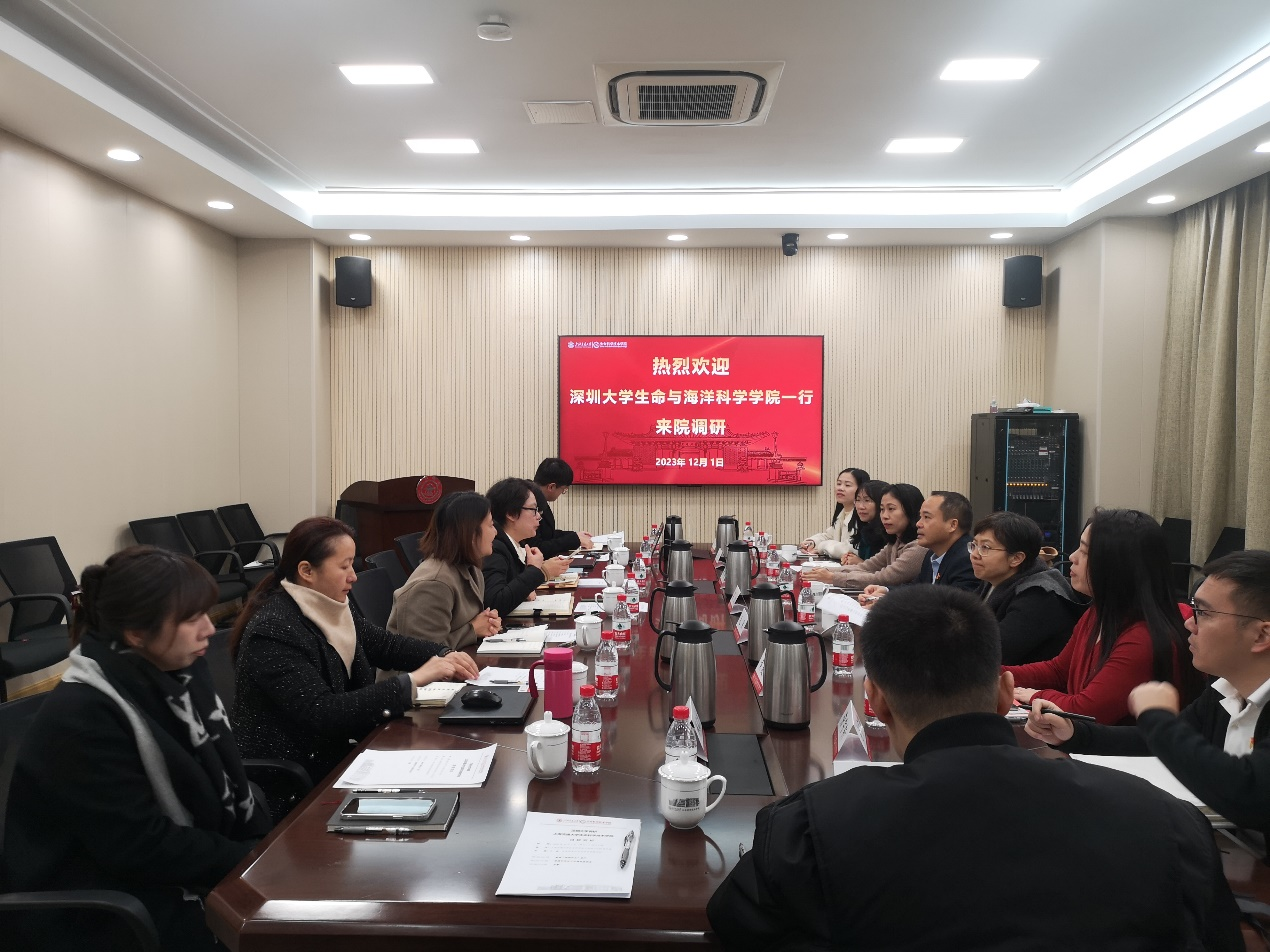 2023年12月1日上午,深圳大学生命与海洋科学学院党委书记梁杰一行到访上海交通大学生命科学技术学院座谈交流。学院党委副书记王鑫、张燕红、党政办主任、机关党支部书记解丛君、党委组织员段慧丹、教务办副主任王晓英、学生办学生党建指导老师、本科生党支部书记陈伟志、本科生教务秘书林忆杉参加本次座谈会。会议由王鑫主持。