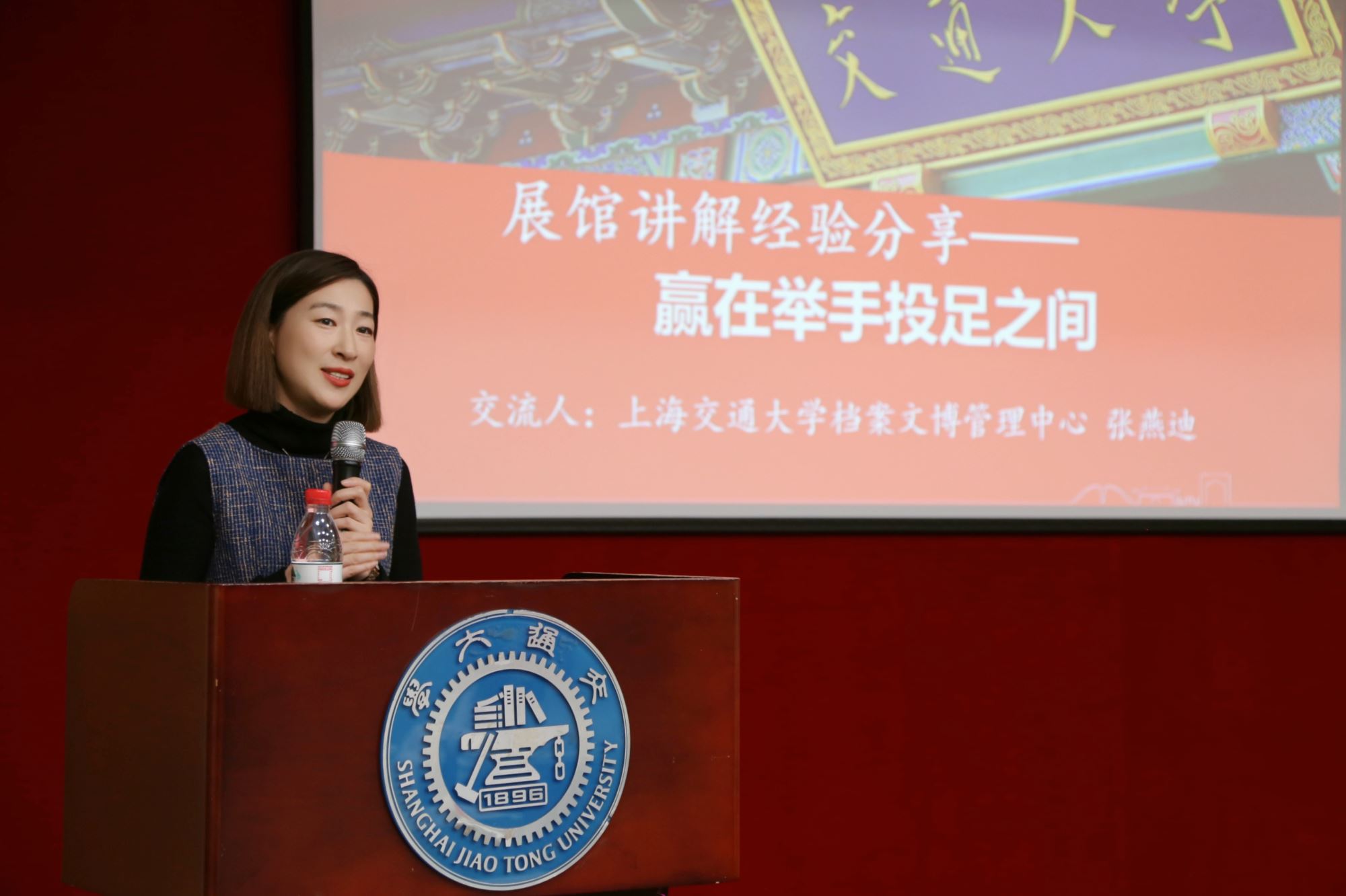 张燕迪作展馆讲解经验分享。她从展览讲解员的定位入手,向同学们生动介绍了展览讲解工作的基础知识、经验技巧和讲解礼仪等,强调讲解工作中要注重语言的通顺口语化,时刻与版面内容相结合,与观众保持联系,做好服饰仪态准备等等。她精炼地总结了讲解工作的“4个要点”、“6个原则”和“3种方式”,全面地阐释了讲解工作中的标准和注意事项。