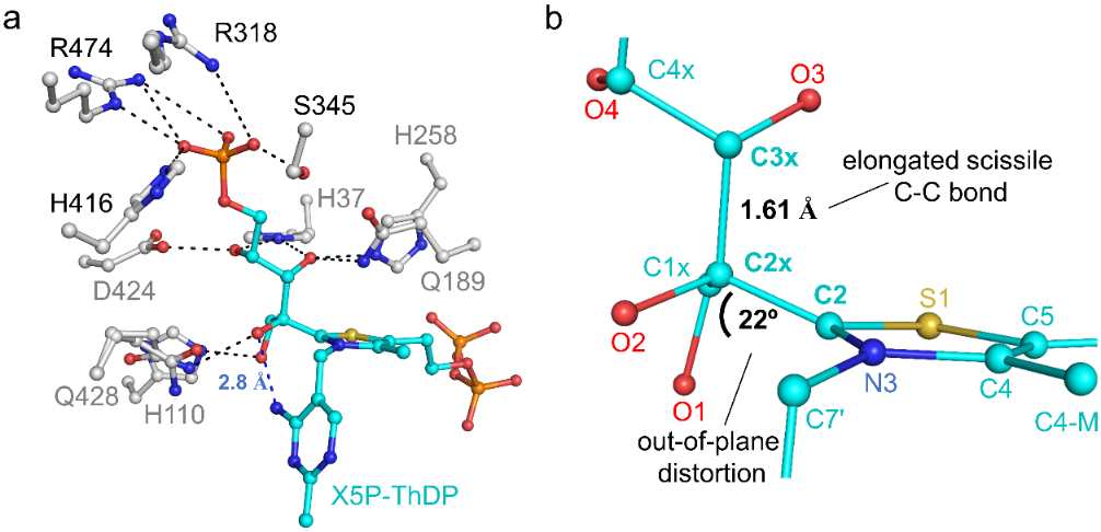图2:hTK与木酮糖5-磷酸形成X5P-ThDP共价中间体结构(PDB: 4KXV)