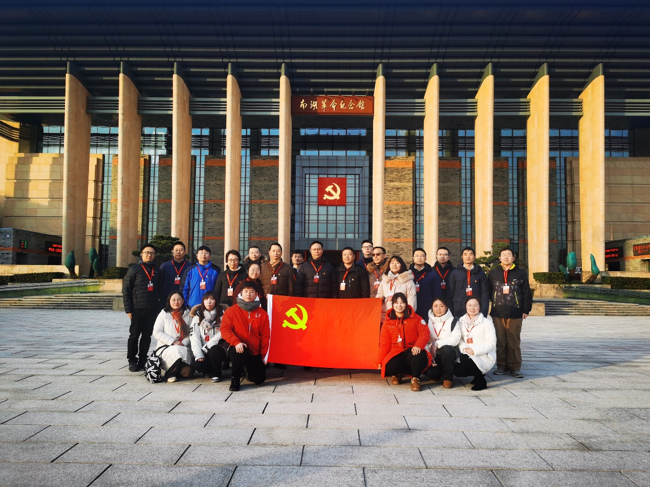 在南湖革命纪念馆中,讲解员带领大家,以党的初心和使命为主线、以党的发展历程为脉络,先后参观“救亡图存”“开天辟地”“光辉历程”“走向复兴”等展厅,追寻革命领袖的历史足迹,重温中国共产党波澜壮阔的峥嵘岁月。南湖革命纪念馆宣誓广场上,大家在党委书记顾建平同志的带领下,面向鲜红的党旗,庄严郑重地举起右手,重温入党誓词。