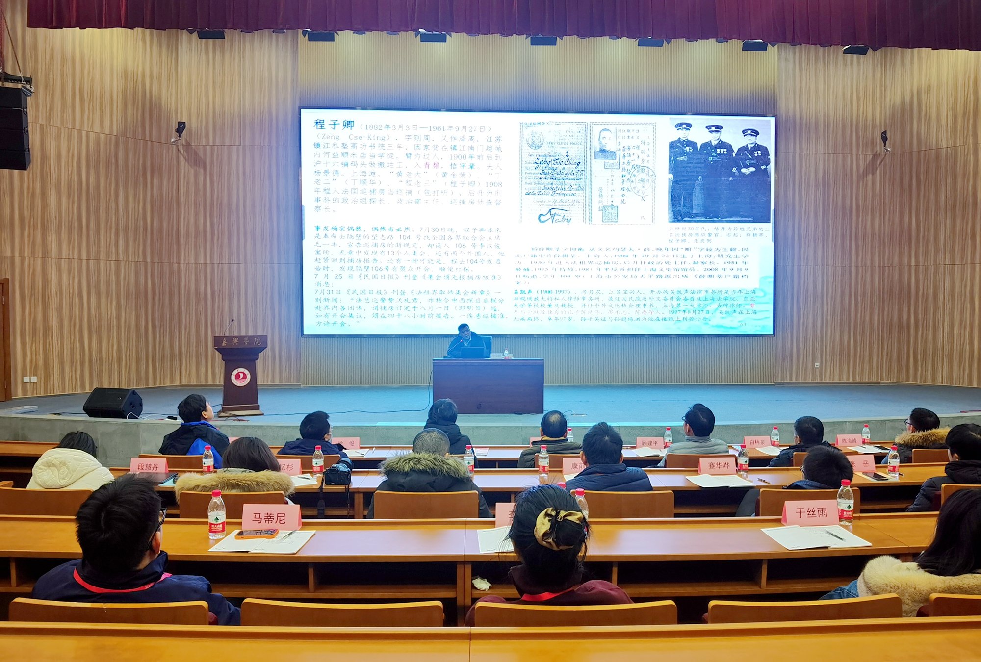 12月24日,全体学员来到嘉兴大学行政楼报告厅。嘉兴大学红船精神研究中心孙宝根教授为大家讲授题为《弘扬红船精神 不忘初心使命》的党史理论课。结合党的二十大报告,系统介绍了党的创建史,深刻揭示了中国共产党成立的伟大历史意义,接着从历史内涵、形成路径、历史地位、时代价值四个角度对红船精神进行了全面解读,最后从价值层面、实践层面阐释了伟大建党精神的科学内涵。