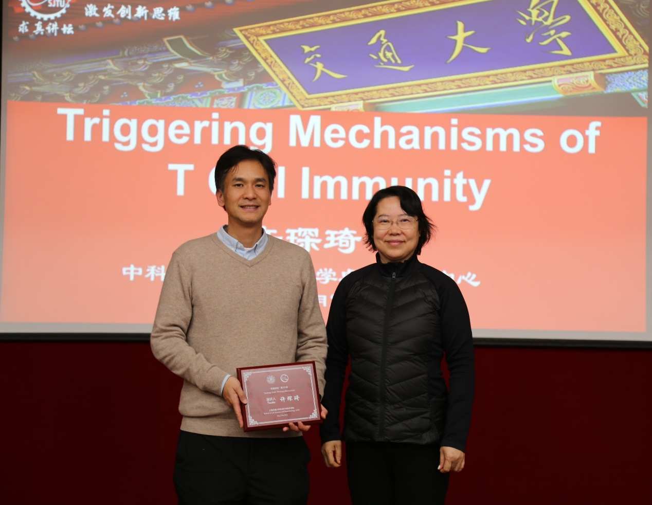 12月27日下午,中科院分子细胞科学卓越创新中心研究员许琛琦应邀做客第37期求真讲坛,做题为《Triggering Mechanisms of T Cell Immunity》的主题报告。来自上海交通大学生命学科相关院系的教师、博士后、研究生50余人参会。讲坛由生命科学技术学院盛毓绶研究中心主任张雷老师主持。