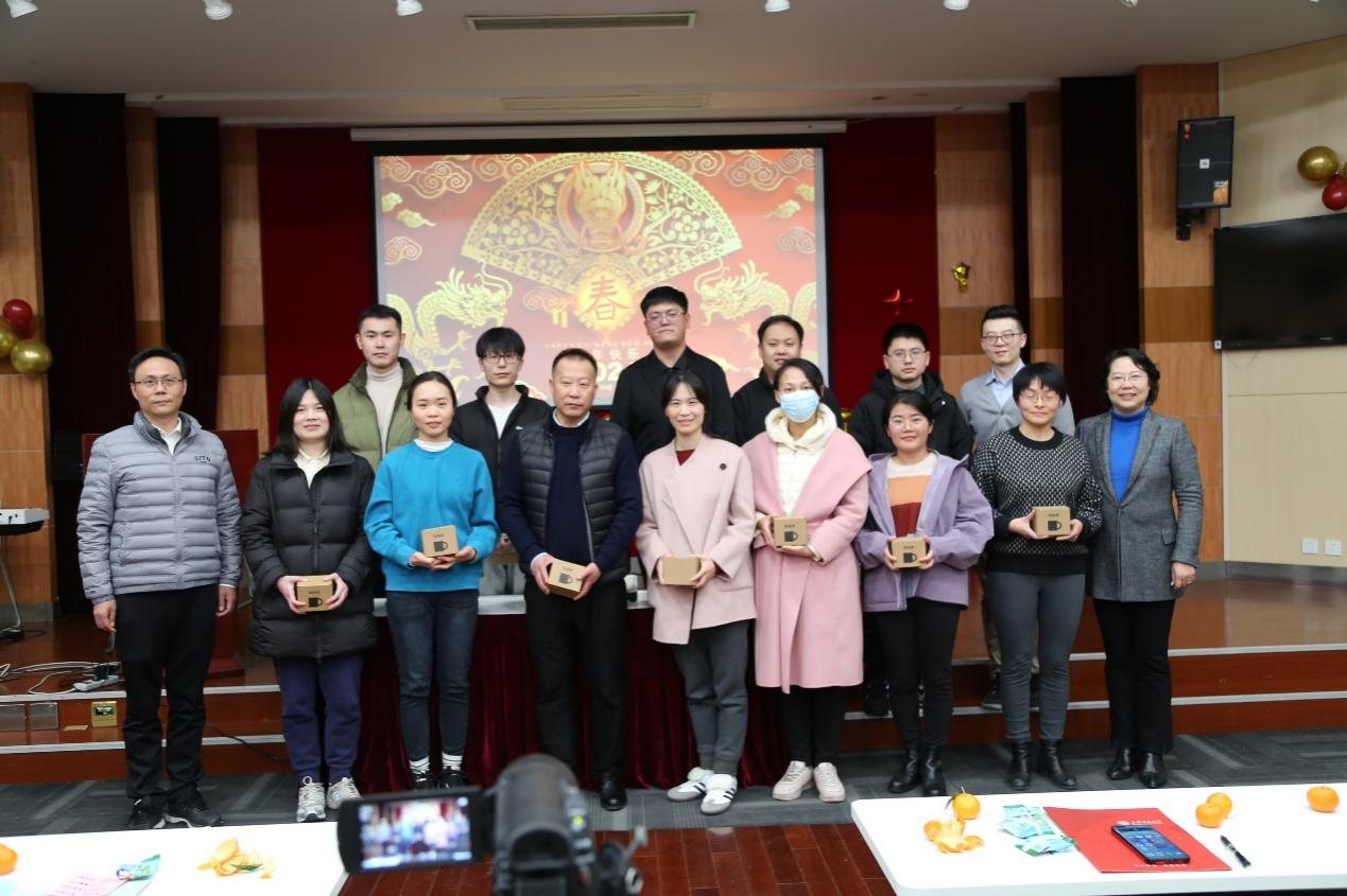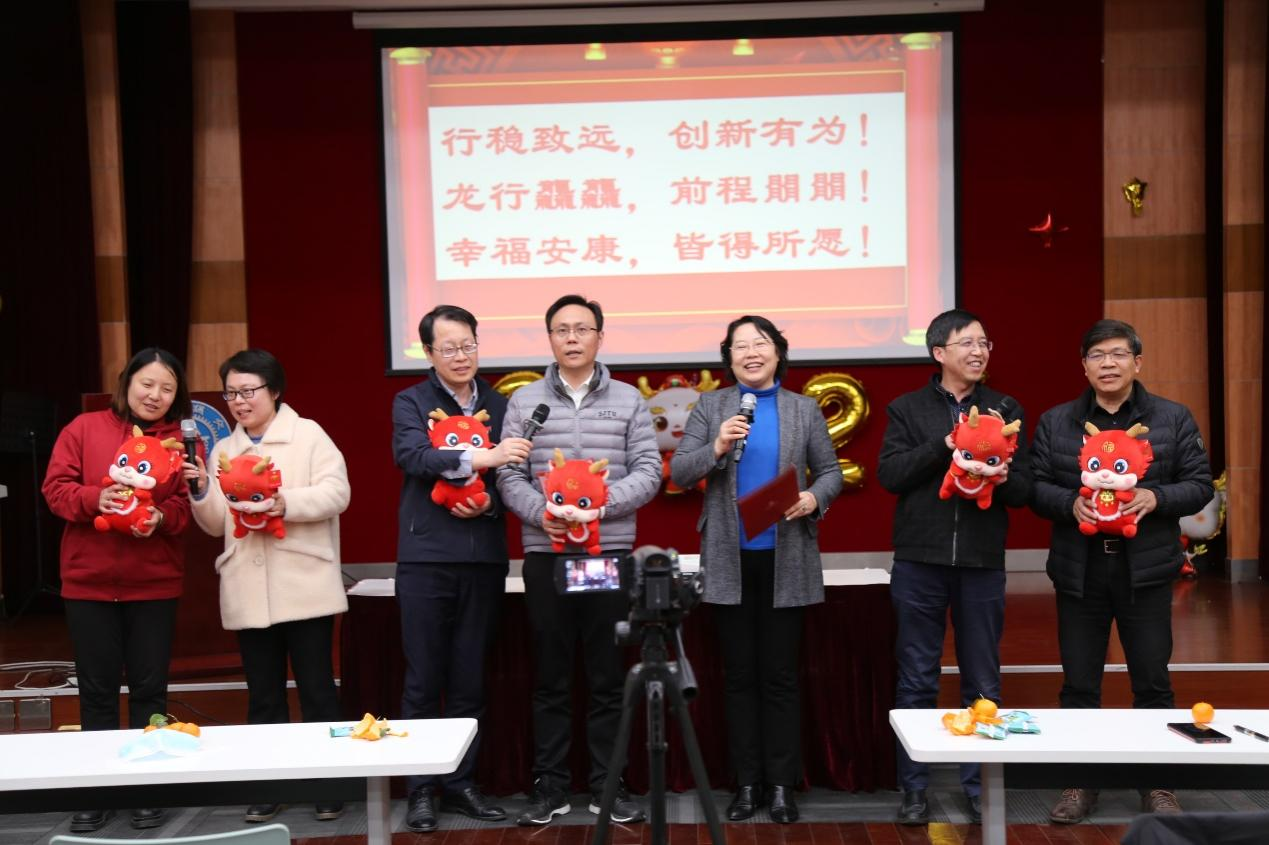 随后,2022和2023年新进教职工上台做自我介绍,龙年本命年的老师们送上新年祝福。冯雁、顾建平代表学院为新进教工和属龙老师颁发纪念品。
