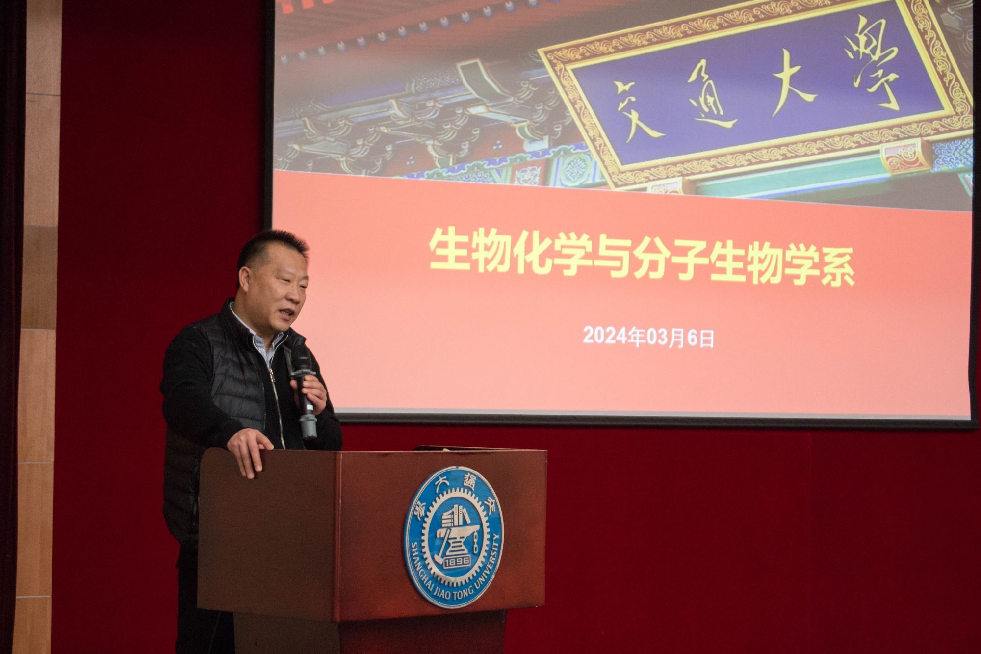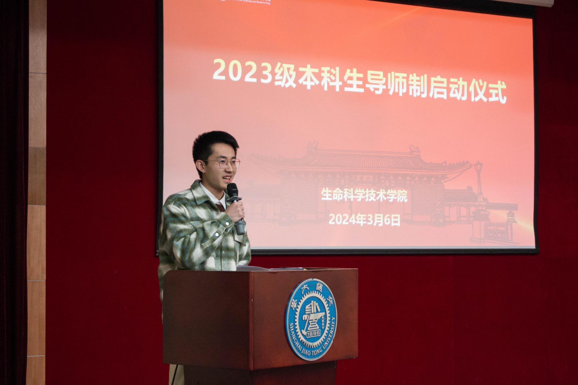 2024年3月6日,生命科学技术学院2023级本科生导师制启动仪式在生命药学楼树华多功能厅隆重举行。学院党委书记顾建平,副院长李志勇,院长助理蒋群,生物化学与分子生物学系主任张雷教授,遗传与发育科学系主任梁婉琪教授,微生物科学系教工党支部书记、副系主任徐俊教授,生物工程系主任白林泉教授,生物信息与生物统计学系教工党支部书记、副系主任陈海峰教授,Bio-X 研究院副院长李丹教授,班主任胡泽汗、孟祥周、邵文广、艾相昭,学生办及教务办教师代表及2023级全体本科生、2022级新转入学生参加了本次活动。活动由学院党委副书记张燕红主持。