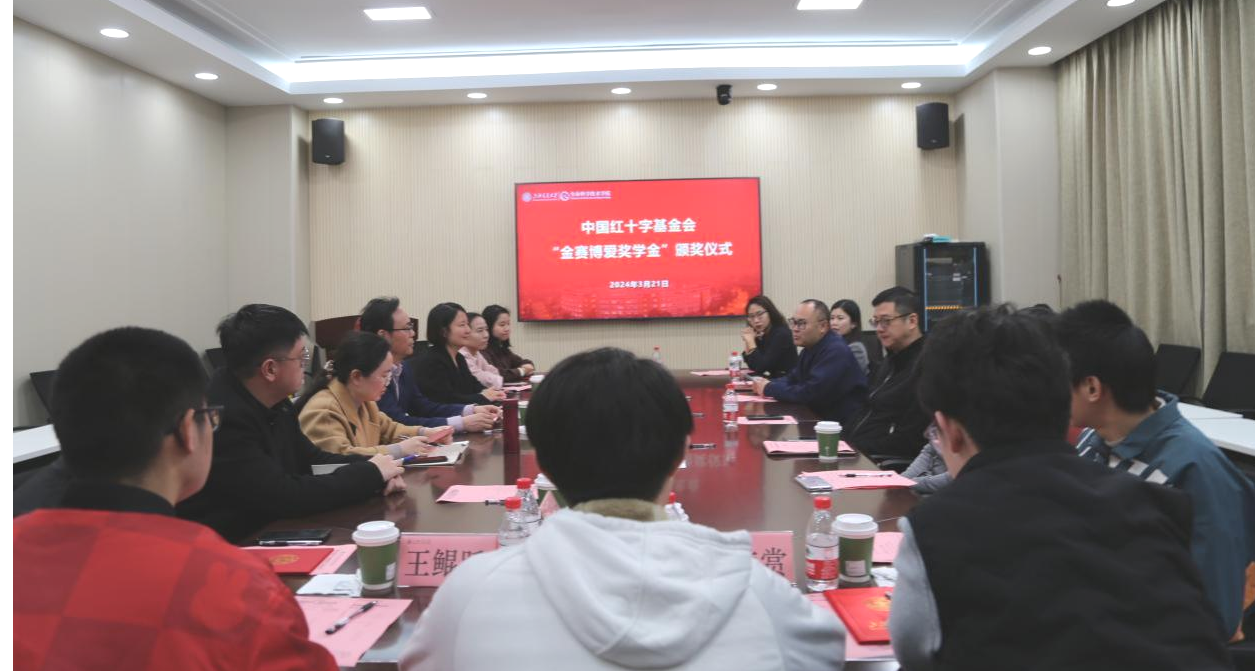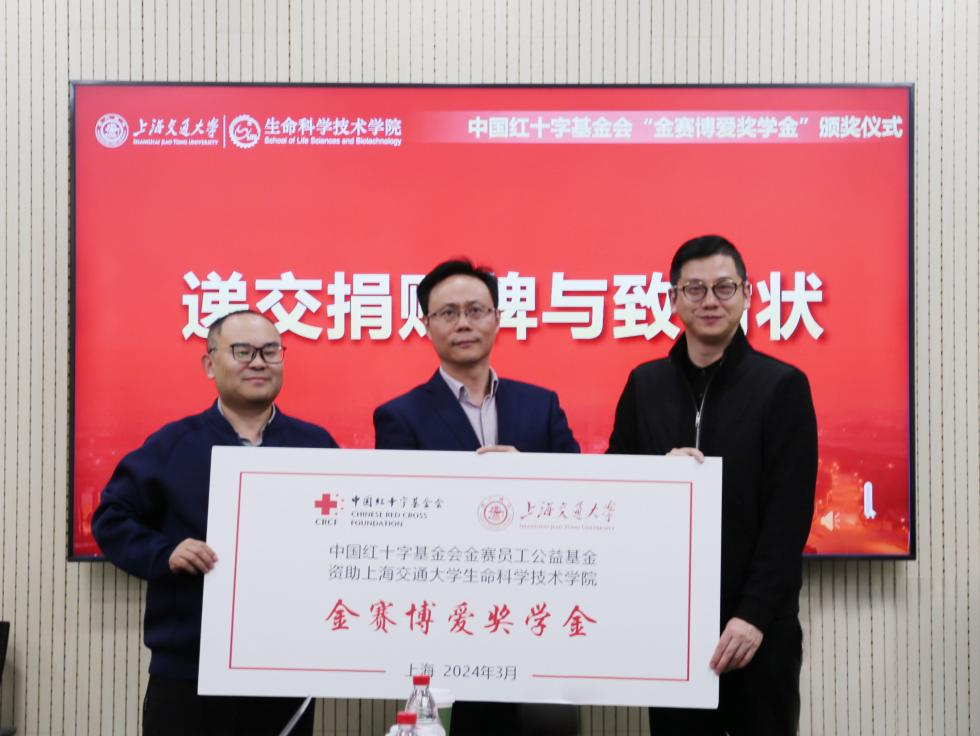 2024年3月21日,中国红十字基金会“金赛博爱奖学金”颁奖仪式在上海交通大学生命科学技术学院2-116会议室举办。中国红十字基金会理事长贝晓超,生命教育项目办主任陈珞,生命教育项目办项目主管陈依妮,金赛药业儿科品牌部市场负责人李学鹏,市场项目负责人王睿茜,人力资源中心人力经理赵嘉琦,生命科学技术学院党委书记顾建平,学生办公室相关教师及获奖学生代表出席仪式。活动由生命科学技术学院党委副书记张燕红主持。
