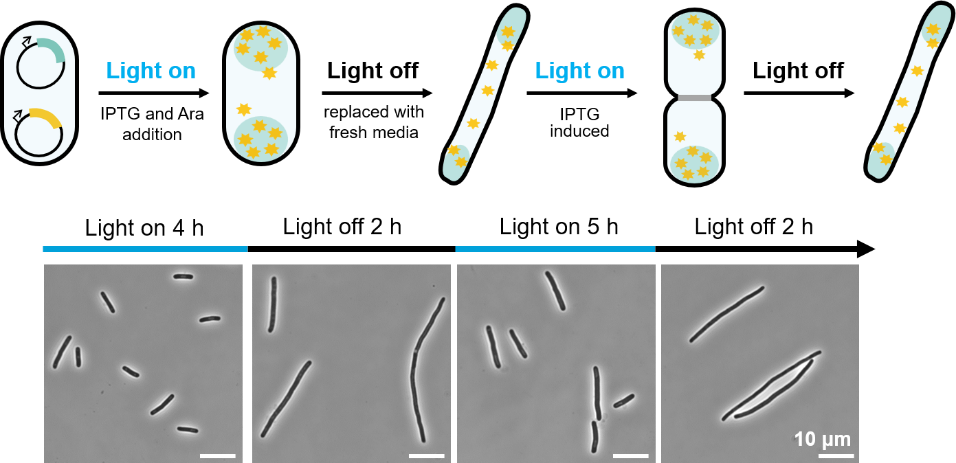 图2. LASC系统对大肠杆菌细胞形态的动态可逆调控