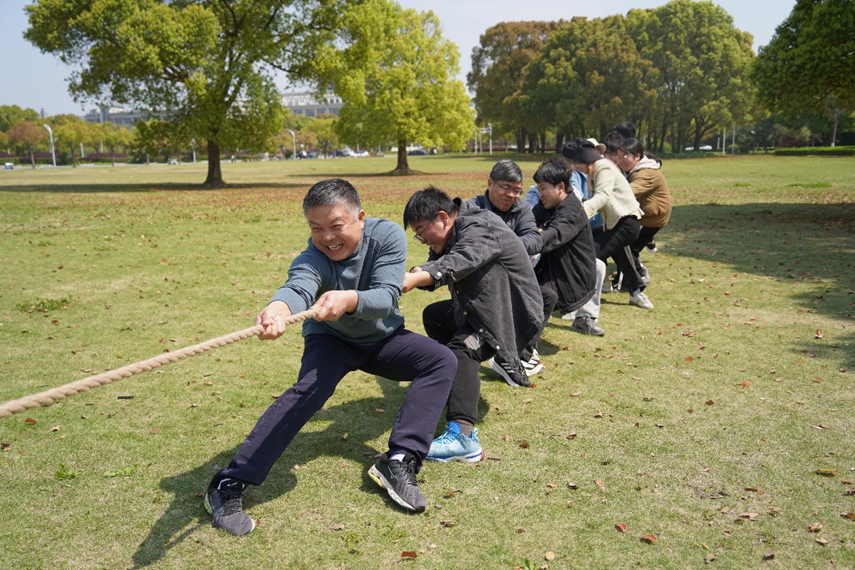 随后,师生混合分组参加素质拓展趣味活动,大家密切配合共同拼搏,在融洽的气氛中完成了趣味接力、请君入瓮、百发百中和拔河等趣味竞技活动。