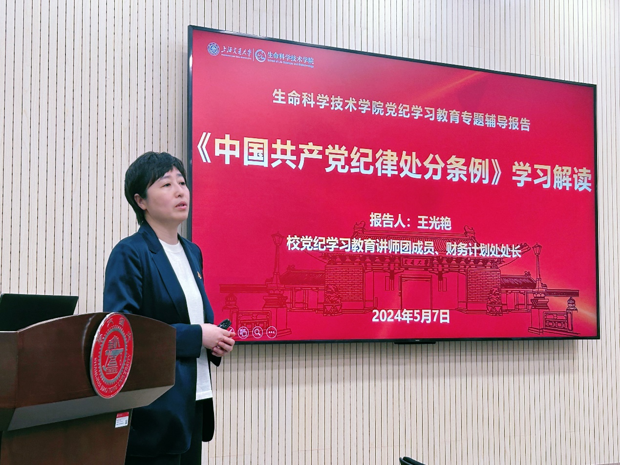 5月7日,生命科学技术学院召开党纪学习教育专题辅导报告暨动员部署会。会议邀请校党纪学习教育讲师团成员、财务计划处处长王光艳作专题辅导报告,学院党政班子,理论中心组成员,教工党支部书记参加会议。学院党委书记、学院党纪学习教育工作组组长顾建平主持会议并作动员部署。