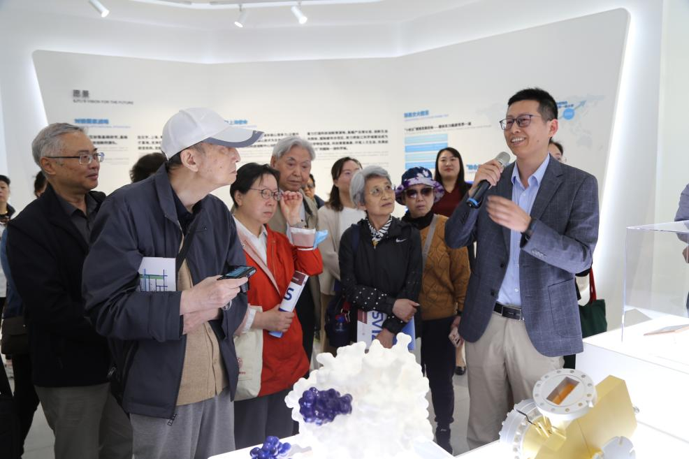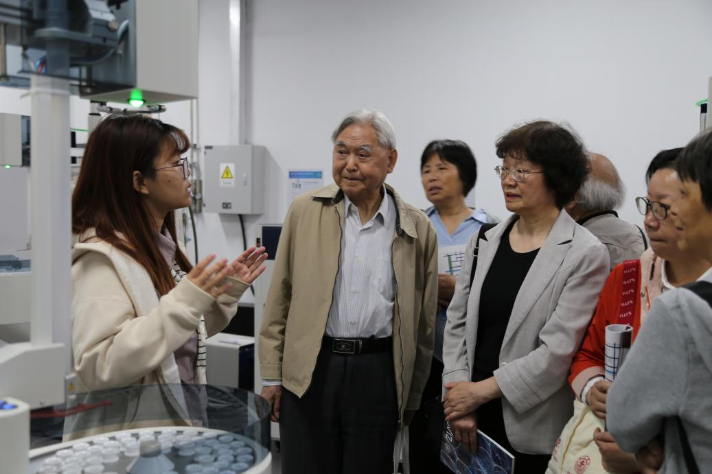 上午,退休教师一行在张江高等研究院党委副书记姜燕媛、院长助理施楚、合成科学党支部书记孔旭东的接待下,观看张江高研院的宣传片,参观张江展示厅、综合办公楼、报告厅等公共空间,并重点参观了合成生物平台实验室、公共仪器平台,全面深入地了解了张江高研院的建设历程、科研布局以及未来愿景。