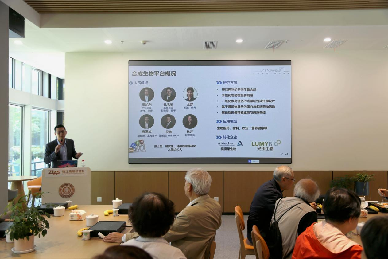 午餐会上,退休教师们听取了张江高研院及合成生物学中心介绍,纷纷感叹创革性、颠覆性、引领性的原始创新研究推动科学技术迅猛发展。生命科学技术学院原常务副院长朱章玉回顾交大生命学科创业之路,寄语青年科研工作者,坚定并专注于自身研究领域,加强开放合作、学科交叉,充分利用好科研平台和人才高地,做世界一流、对人类有益的科学贡献。