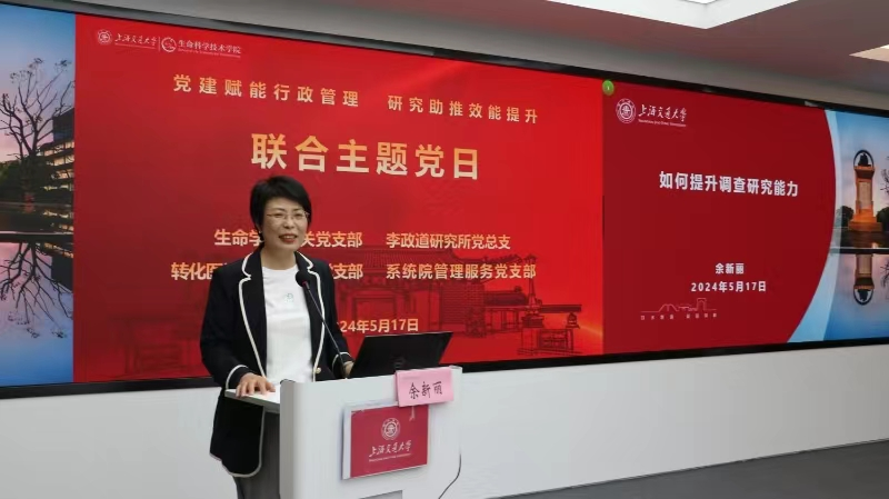 为提升机关行政人员的专业素养,打造一支调查研究能力过硬的管理服务队伍,5月17日,生命科学技术学院机关党支部组织开展行政管理人员综合素质提升培训班(第四期)专题培训,本期培训主题为“调查研究能力提升”。本次培训由学院机关党支部、转化医学研究院直属党支部、李政道研究所党总支、系统院管理服务党支部联合主办,四个单位的70余名行政管理人员踊跃参加。生命科学技术学院党委副书记王鑫主持培训。