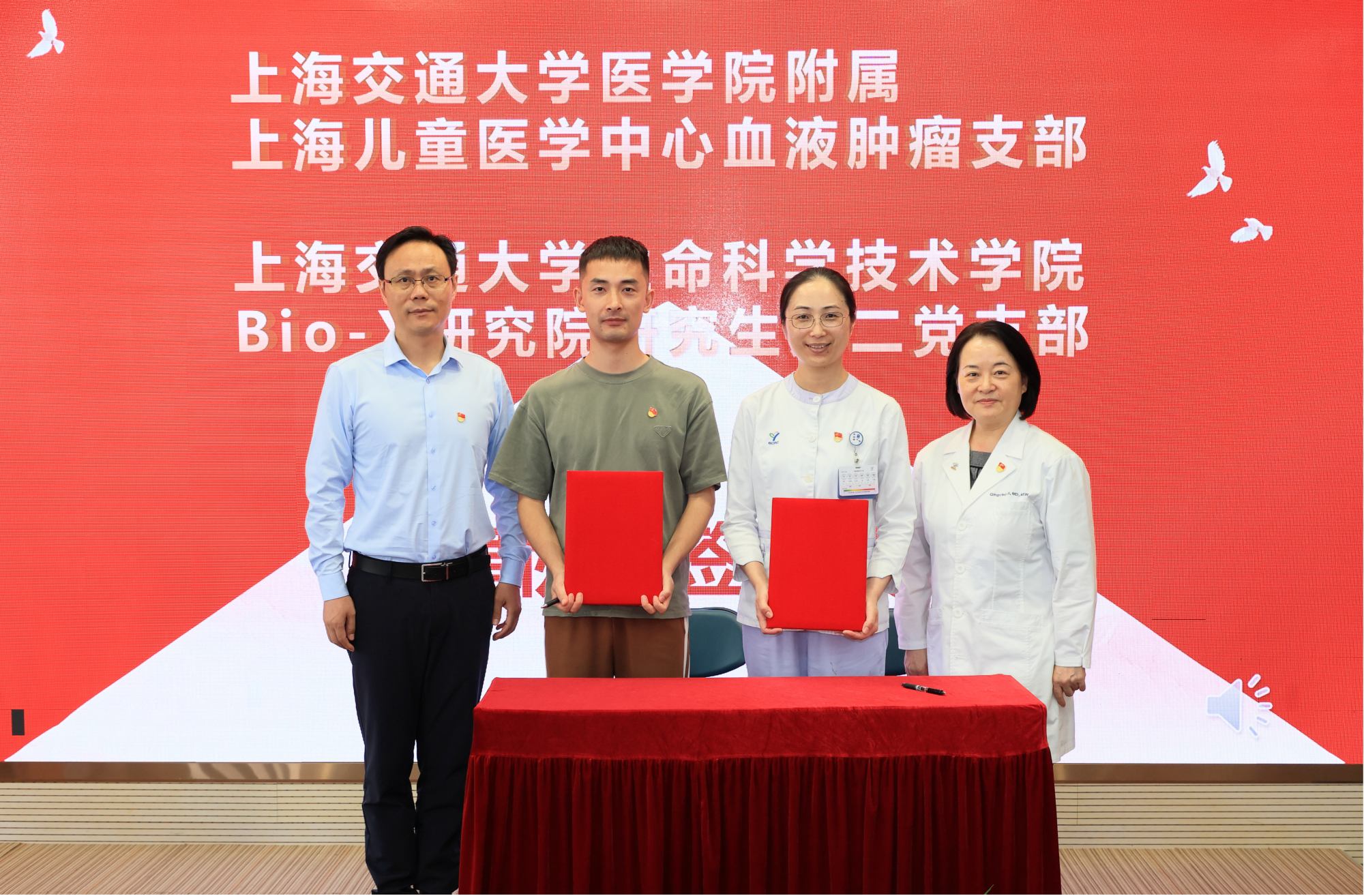 2024年6月12日,上海交通大学生命科学技术学院Bio-X研究院研究生第二党支部与上海交通大学医学院附属上海儿童医学中心血液肿瘤党支部于儿童医学中心血液肿瘤大楼举行二期共建签约仪式。上海儿童医学中心党委书记季庆英,生命科学技术学院党委书记顾建平,学生办主任刘燕芳,思政教师陈伟志以及双方支部党员代表出席仪式,活动由血液肿瘤党支部书记周芬主持。