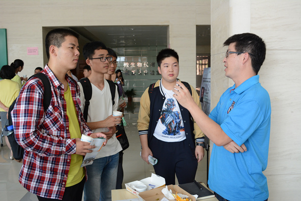 午餐会后,学院及专业介绍会在树华多功能厅举行。李文纯老师从生命科学技术学院的整体构架、学科设置、师资力量及近几年毕业生的发展等方面向同学们做了全面的介绍。接着,乔忠东老师、韦朝春老师和夏小霞老师分别详细介绍了生物技术、生物信息和生物工程三个专业。乔老师从“什么是生命”的定义展开,利用各个教授的研究方向把“生命研究可以做什么”这一问题娓娓道来;韦老师通过一段精彩的视频展示了生物信息与生物统计系;夏老师详细介绍了生物工程专业的学科特色、研究领域及未来发展等同学们关心的问题。同学们都认真记下笔记,作为自己今后选择专业重要的参考。