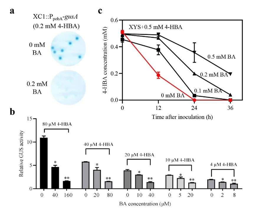 3.宿主植物苯甲酸抑制植物病原黄单胞菌降解4-羟基苯甲酸的分子机制
